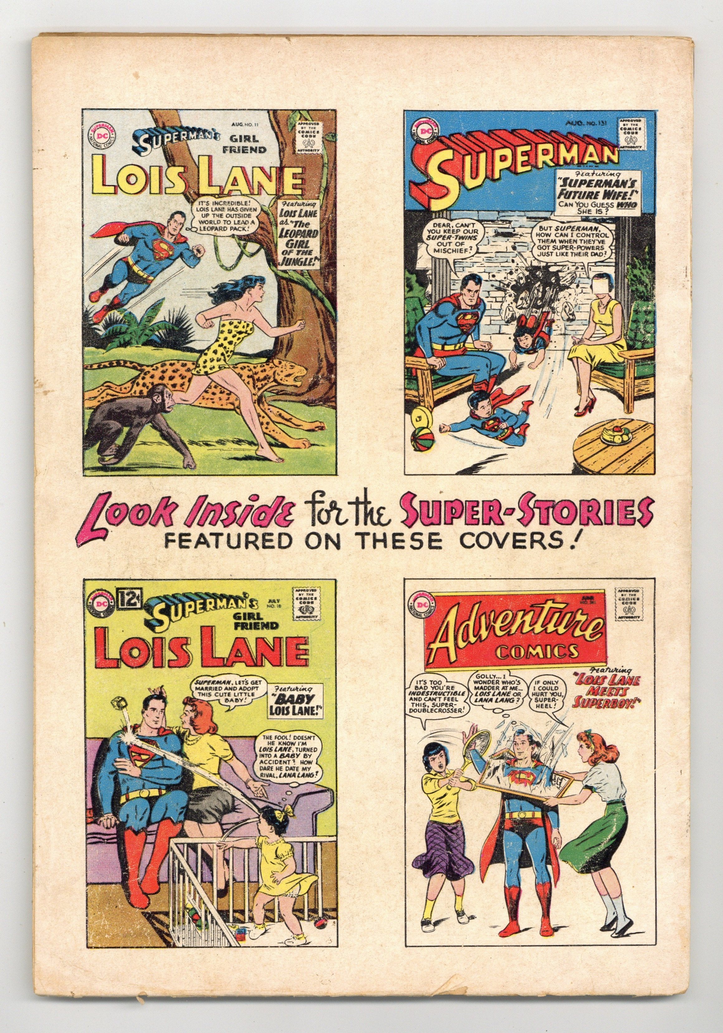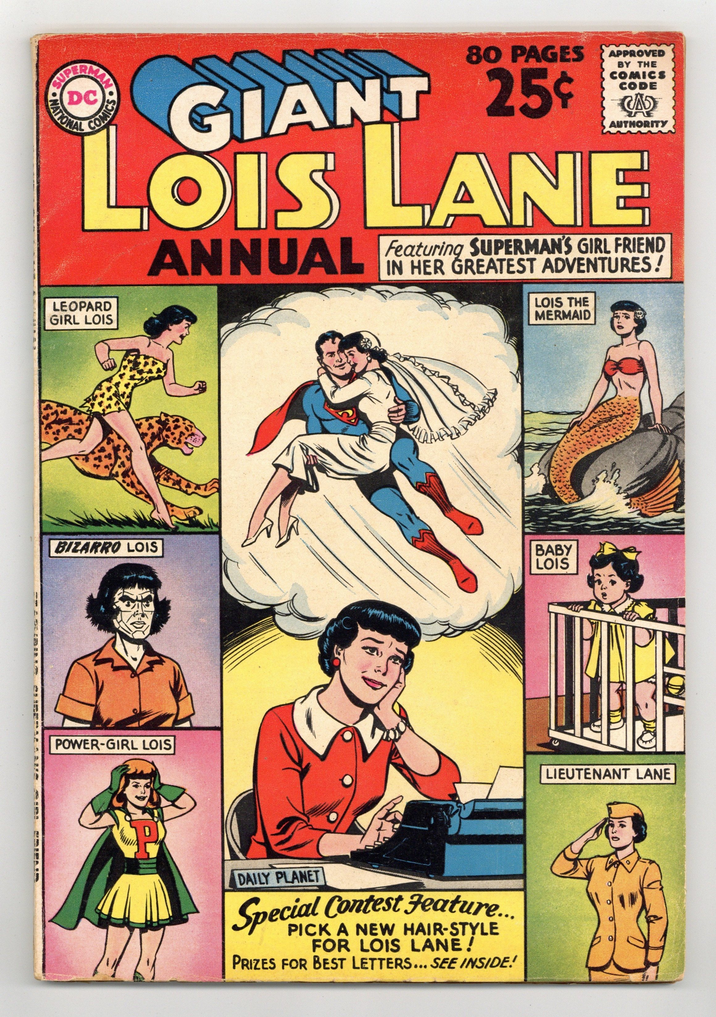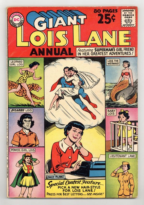 Tags: Superman$30.0080-page giant. Summer 1962. Reprints: "Superboy Meets Lois Lane," "The Leopard Girl of the Jungle," "Lois Lane's Super-Dream," Lieutenant Lois Lane," "The Mermaid From Metropolis," "Lois Lane, Traitor," "The Cry-Baby of Metropolis," "The man Who Was Clark Kent's Double," and "Superman's Future Wife." Cover price $0.25.