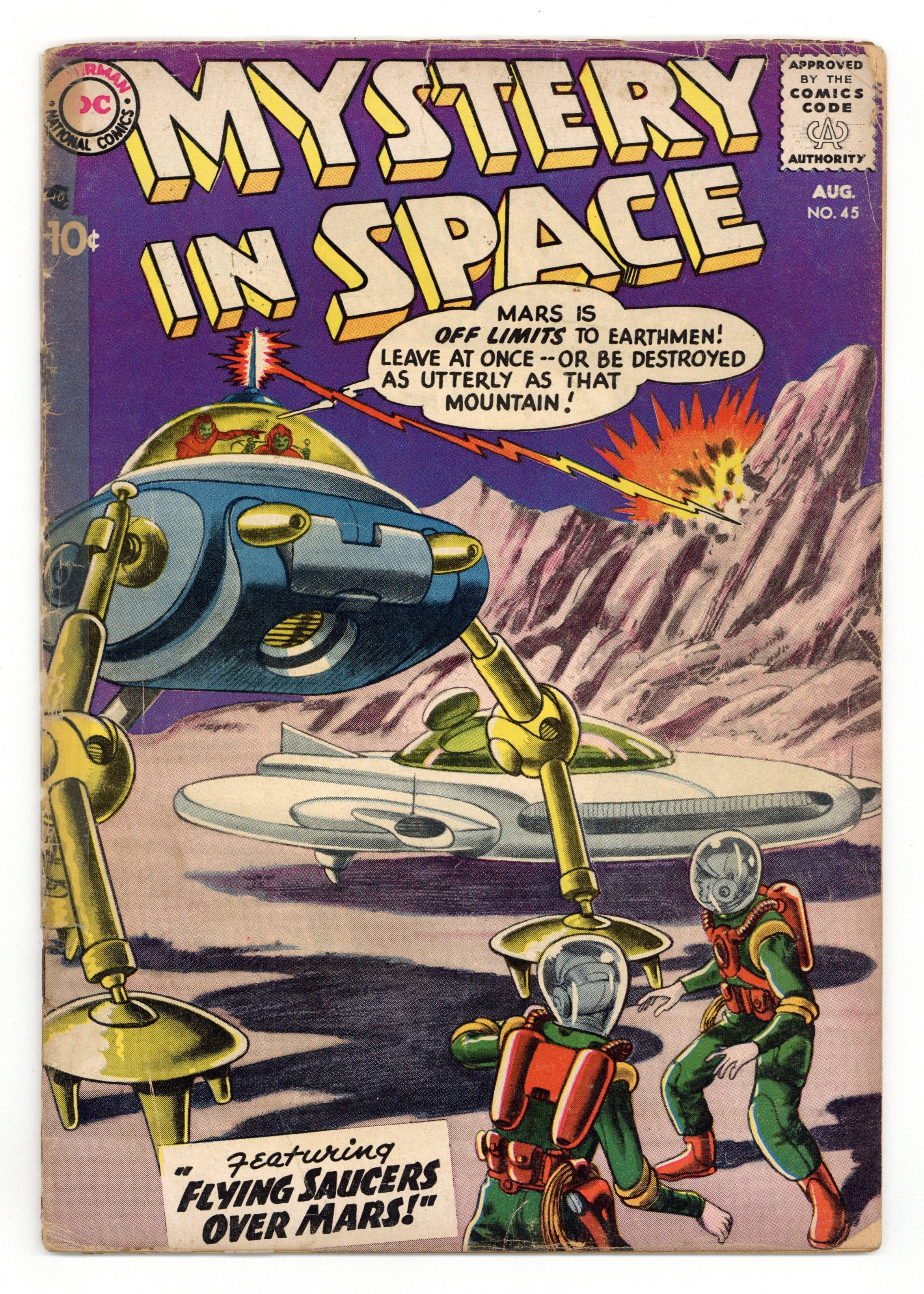 "Flying Saucers Over Mars!" (pencils by Carmine Infantino?); "The Luxury Limousine of Space!" (pencils by Gil Kane?); and "The Amazing Trail of Mark Gordon!" (art by Murphy Anderson?). Kane grey-tone cover. 36 Pages, Full Color. Cover price $0.10.