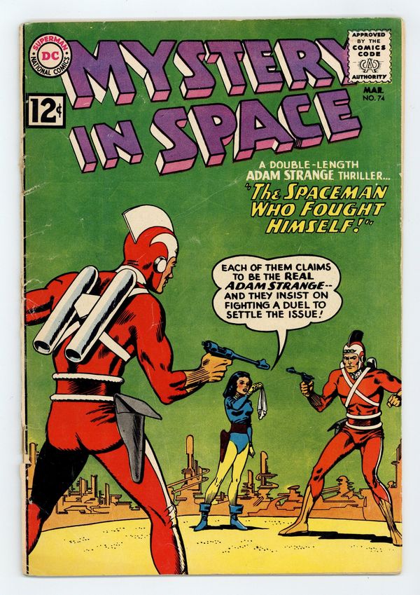 Adam Strange stars in "The Spaceman Who Fought Himself!" (pencils by Carmine Infantino). Back-up story: "Where is the Paradise of Space?" (art by Sid Greene?). Infantino cover pencils. 36 Pages, Full Color. Cover price $0.12.