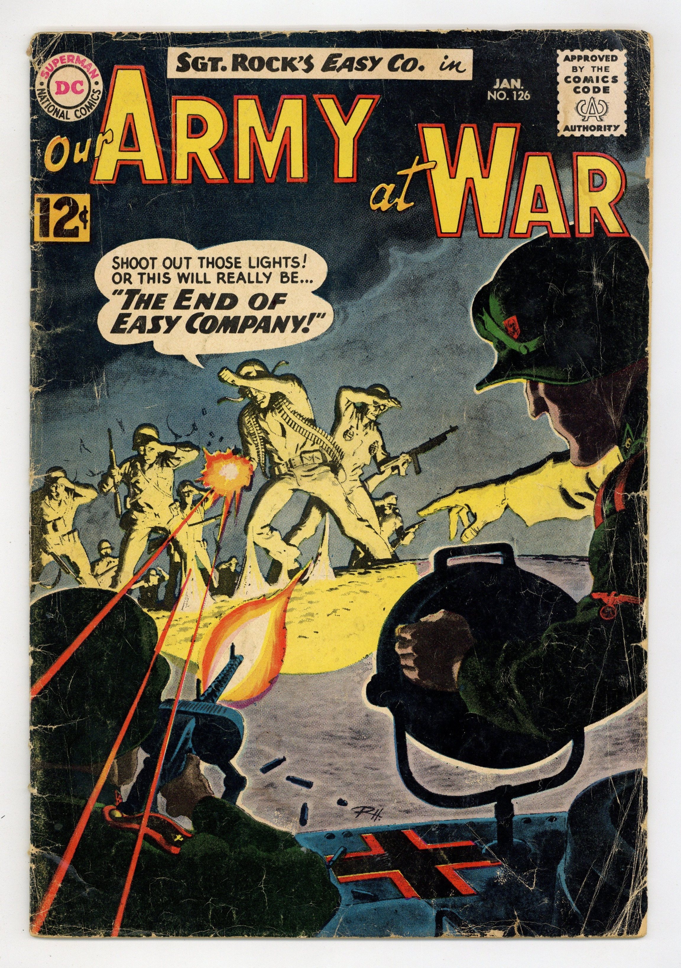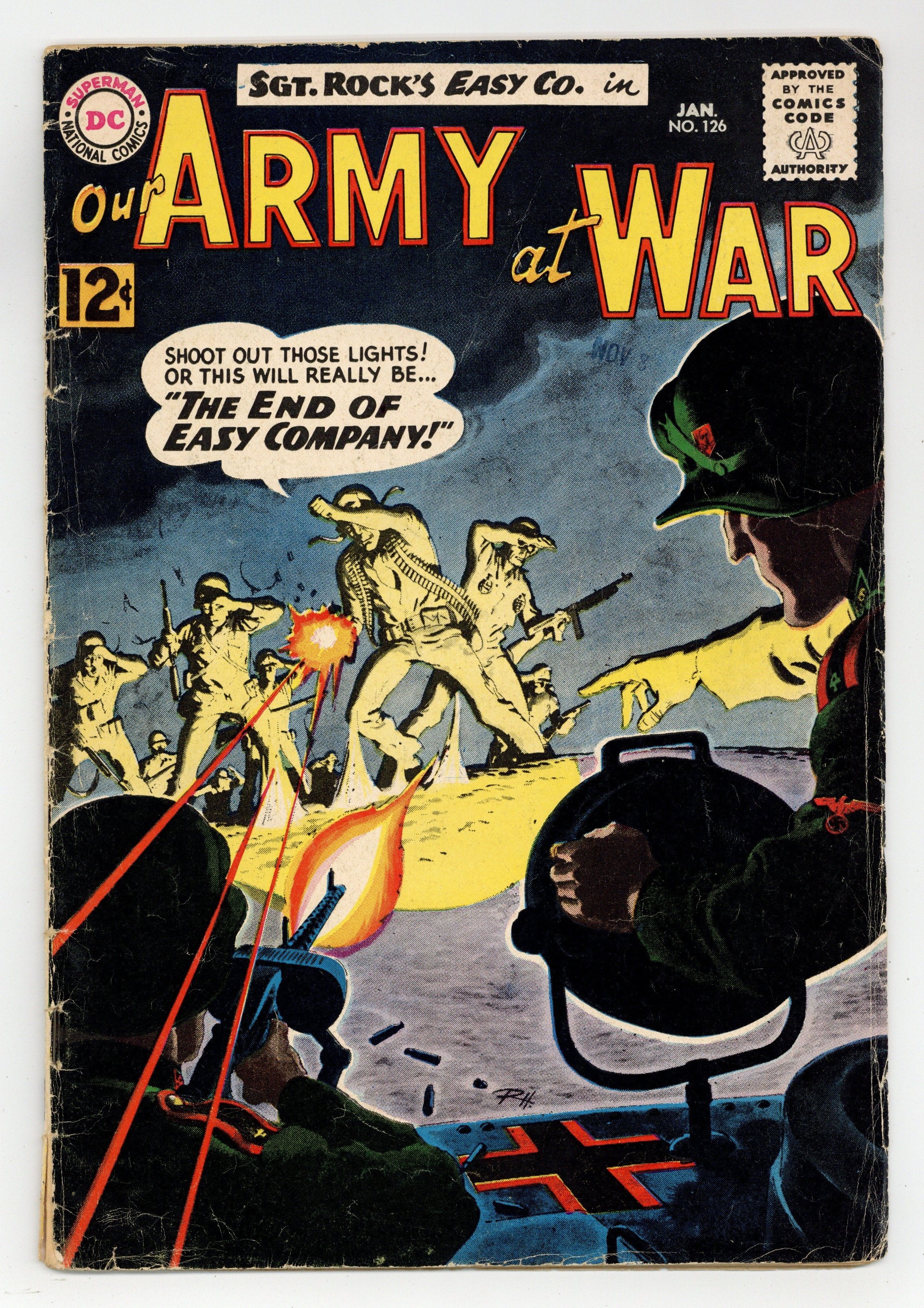 Cover art by Russ Heath. The End of Easy Co. starring Sgt. Rock, script by Bob Kanigher, art by Joe Kubert. The Fort That Wouldn't Stay Up, script by Hank Chapman, art by Irv Novick. 36 Pages, Full Color. Cover price $0.12.