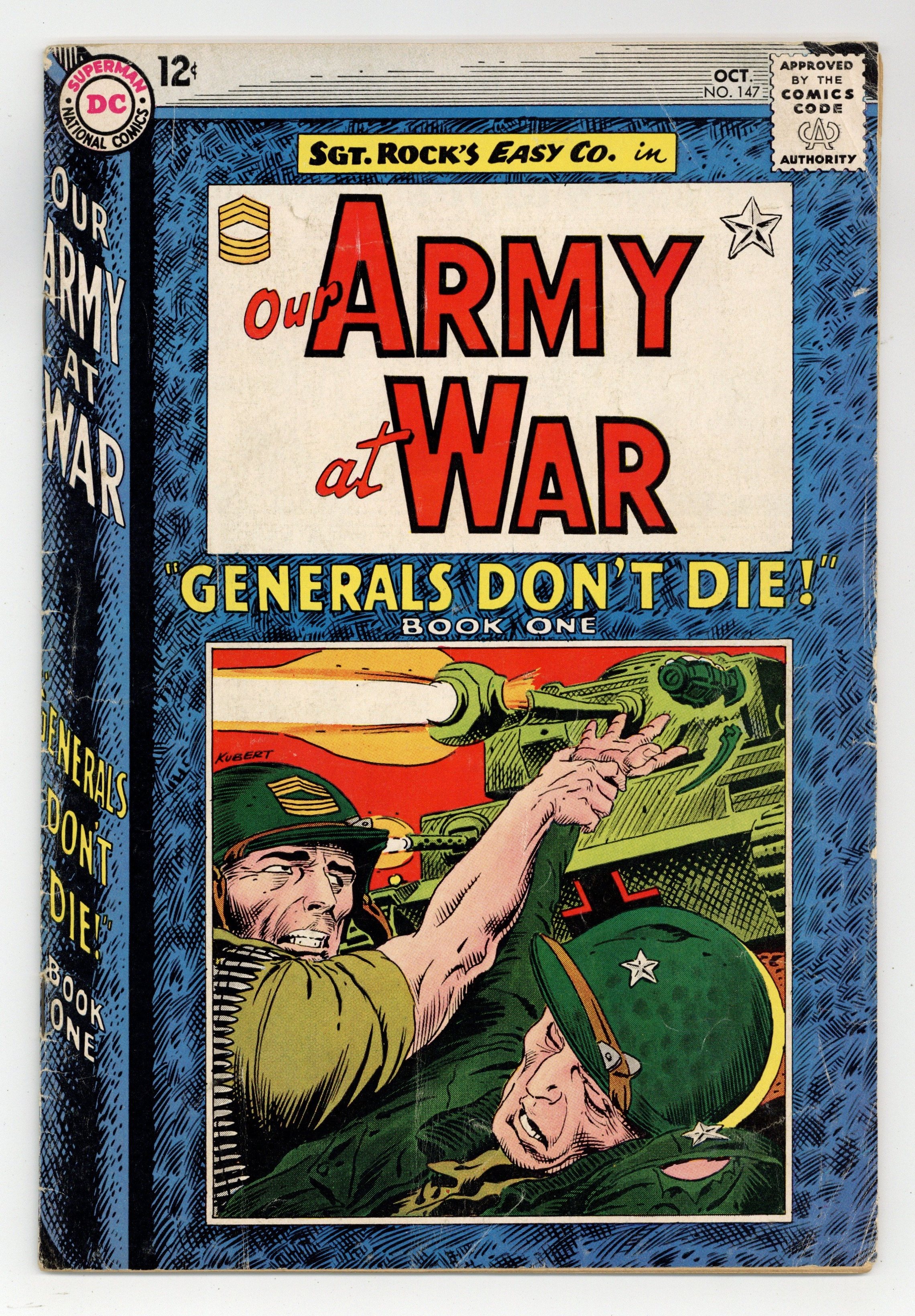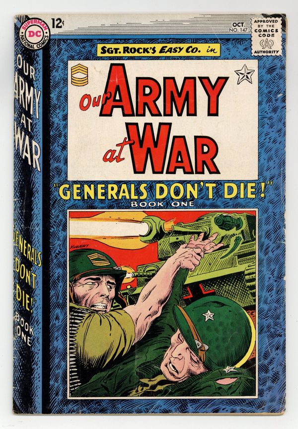 Cover art by Joe Kubert. Book One: Generals Don't Die starring Sgt Rock, script by Bob Kanigher, art by Joe Kubert. Straw Pilot, script by Hank Chapman, art by Joe Kubert. 36 Pages, Full Color. Cover price $0.12.