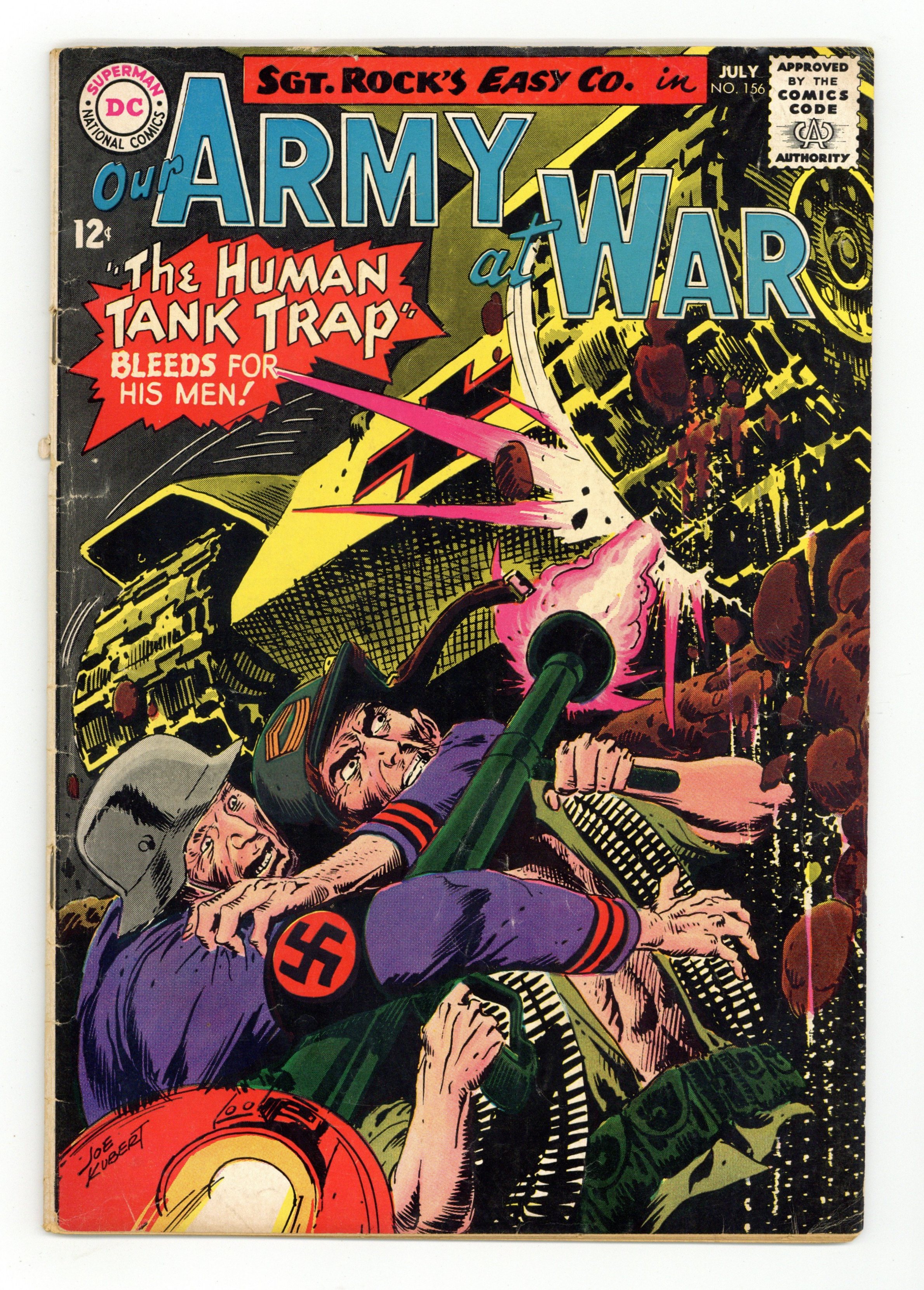 Cover art by Joe Kubert. The Human Tank Trap starring Sgt Rock, script by Bob Kanigher, art by Joe Kubert. Penny In The Slot, script by Bob Kanigher, art by Jack Abel. 36 Pages, Full Color. Cover price $0.12.