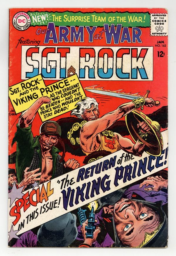 $20.00Cover art by Joe Kubert. The Prince and the Sergeant! starring Sgt Rock, script by Bob Kanigher, art by Joe Kubert. The return of the Viking Prince. Dirty Little War!, script by Hank Chapman, art by Gene Colan. Private Diary humor page. 36 Pages, Full Color. Cover price $0.12.