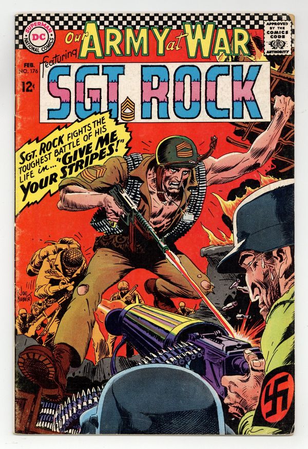 Cover art by Joe Kubert. Give Me Your Stripes starring Sgt Rock, script by Bob Kanigher, art by Joe Kubert. We Two Are One, script by Howard Liss, art by John Calnan. Private Pete humor page by Henry Boltinoff. G.I. Joe Club with Andy & George ad. 36 Pages, Full Color. Cover price $0.12.