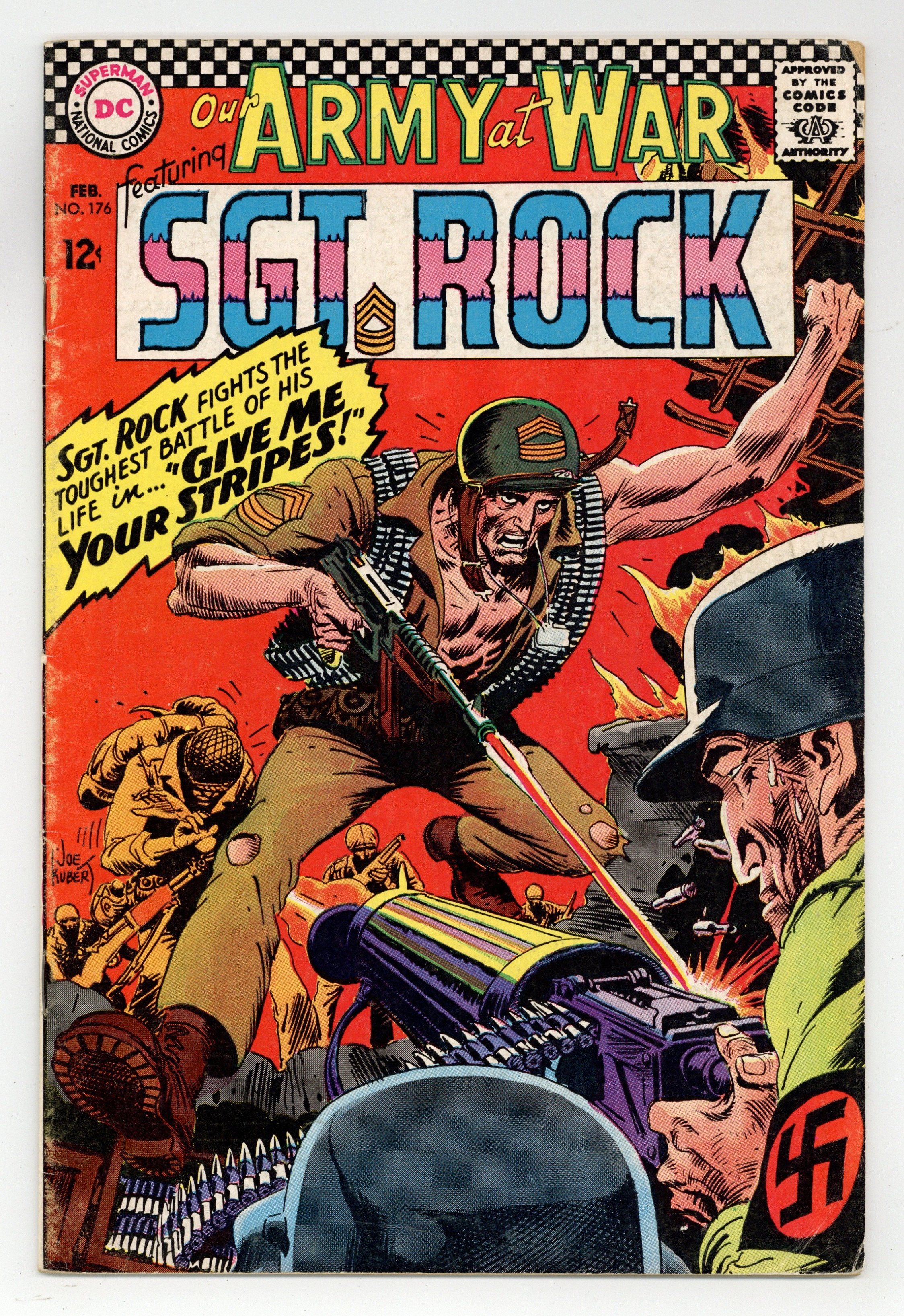 $14.50Cover art by Joe Kubert. Give Me Your Stripes starring Sgt Rock, script by Bob Kanigher, art by Joe Kubert. We Two Are One, script by Howard Liss, art by John Calnan. Private Pete humor page by Henry Boltinoff. G.I. Joe Club with Andy & George ad. 36 Pages, Full Color. Cover price $0.12.