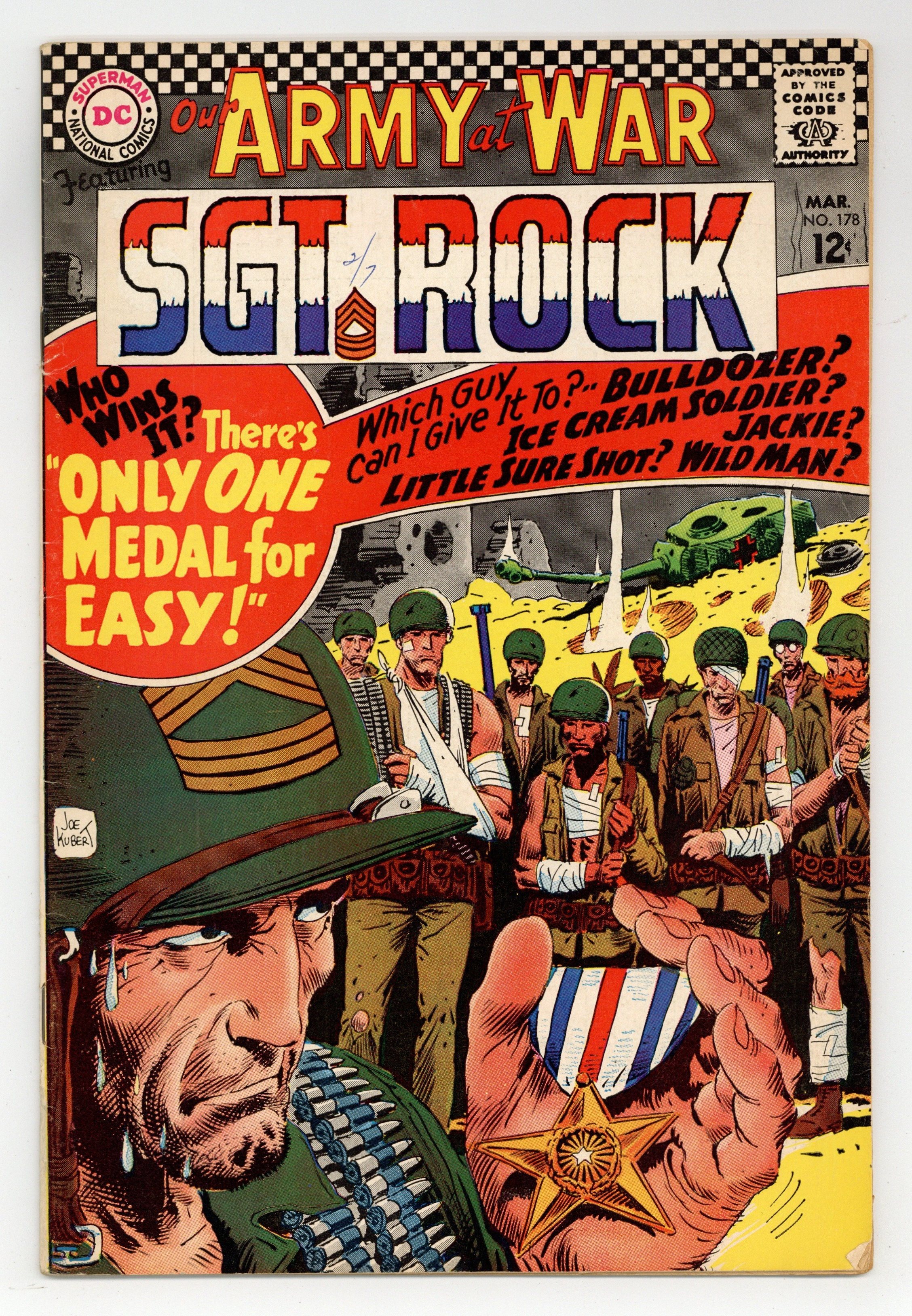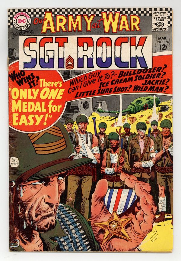 Cover art by Joe Kubert. Only 1 Medal for Easy starring Sgt Rock, script by Bob Kanigher, art by Russ Heath. My Cockpit is a Cradle, script by Hank Chapman, art by Jack Abel. Cap's Hobby Hints by Henry Boltinoff. 36 Pages, Full Color. Cover price $0.12.