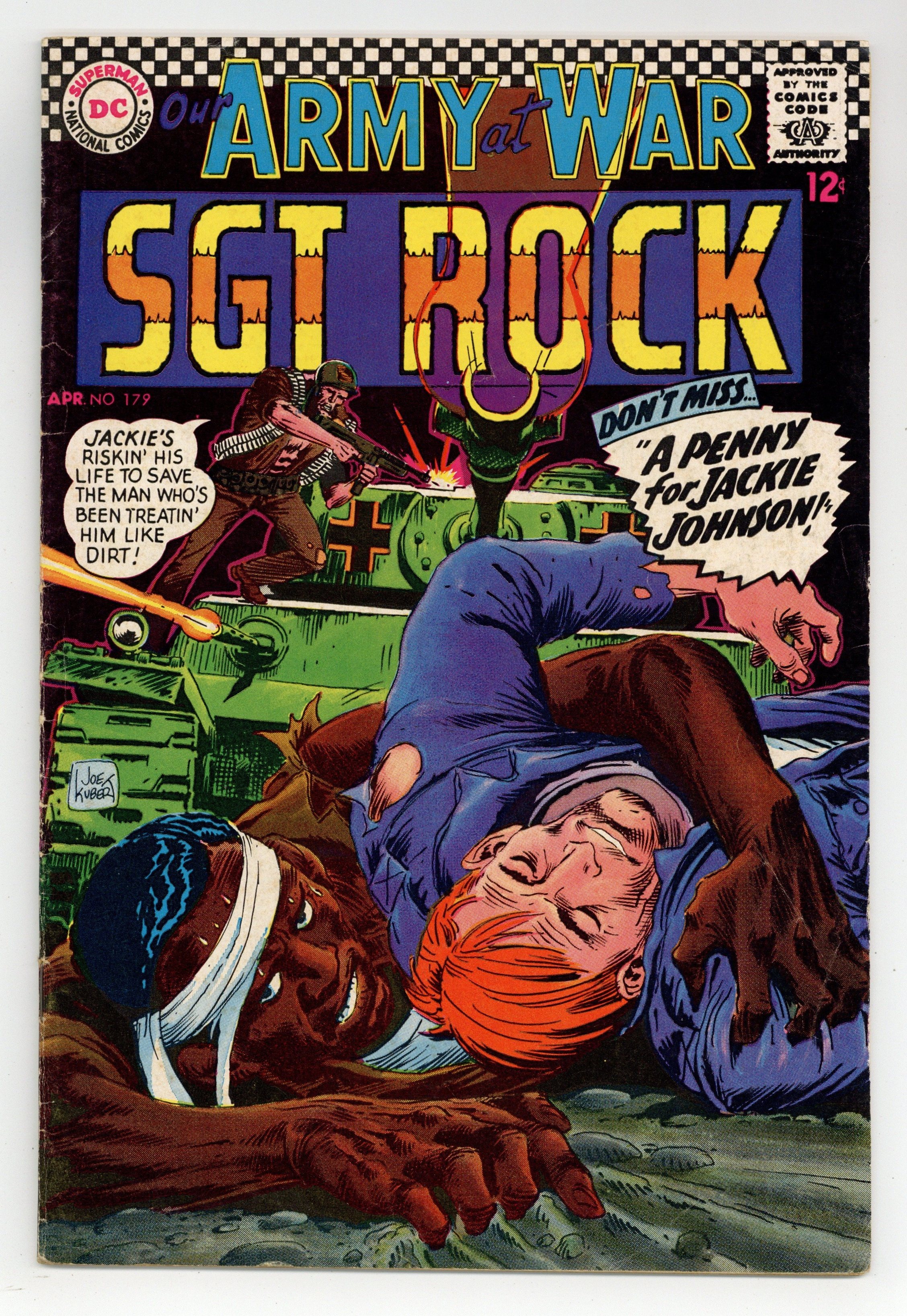 $24.00Cover art by Joe Kubert. A Penny For Jackie Johnson! starring Sgt. Rock, script by Robert Kanigher, art by Joe Kubert. The Golden Rule public service announcement starring Bob Hope, script by Jack Schiff, art by Bob Oksner. Charlie's Castle, script by Howard Liss, art by Jack Abel. 36 Pages, Full Color. Cover price $0.12.