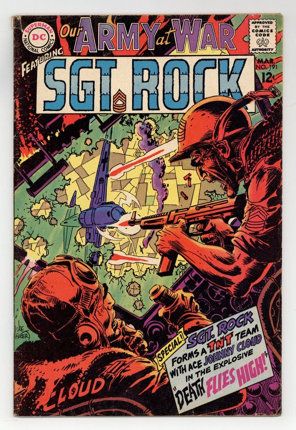 $27.00Cover art by Joe Kubert. Death Flies High! starring Sgt. Rock and Johnny Cloud, script by Bob Kanigher, art by Joe Kubert. Phantom Fliers, script by Dave Wood, art by Jack Abel. Letter column art by Kubert. 36 Pages, Full Color. Cover price $0.12.
