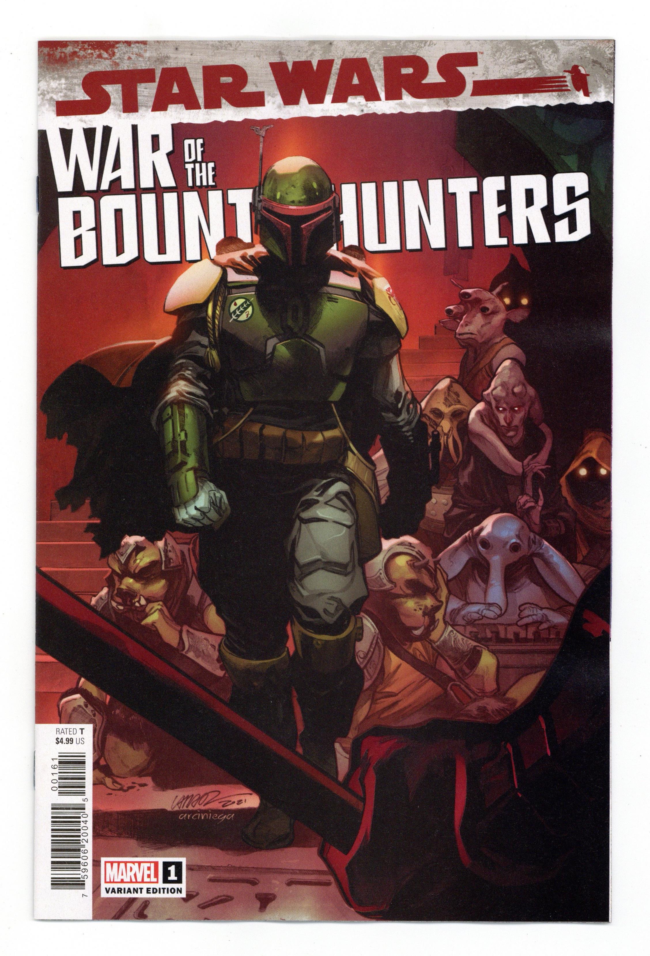 Tags: War of the Bounty Hunters (part 1), Star Wars$9.00Limited 1 for 50 Retailer Incentive Variant Cover. Written by Charles Soule. Art by Luke Ross. Cover by Pepe Larraz. AT WAR FOR THE GREATEST PRIZE OF ALL: HAN SOLO! THE HUNT BEGINS! Nobody. Steals. From BOBA FETT! The notorious bounty hunter will not stop until he gets what's rightfully his. For the thief, no corner of the galaxy is safe. Good thing for them that the REBEL ALLIANCE, THE EMPIRE and every bounty hunter in the galaxy is standing in Boba's way. With a last-page reveal that will blow this Death Star-sized story wide open, Issue #1 is just the beginning. The biggest crossover in STAR WARS history will continue raging through the pages of the WAR OF THE BOUNTY HUNTERS event miniseries and tie-in to STAR WARS, DOCTOR APHRA, DARTH VADER and BOUNTY HUNTERS through October. Only one hunter will be left standing, and the STAR WARS galaxy will never be the same! 36 pages, full color. Rated T Cover price $4.99.