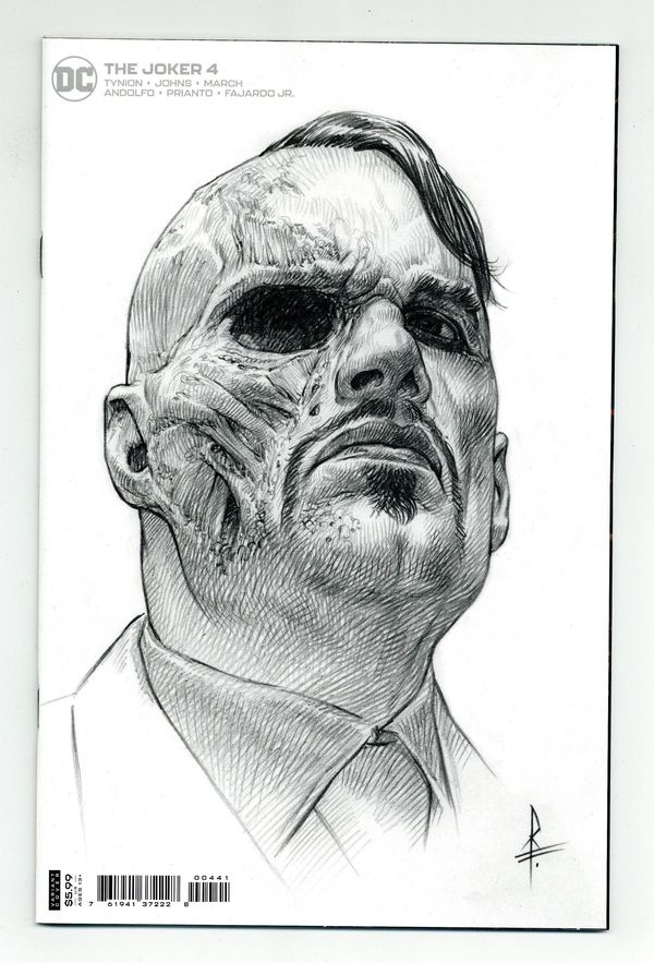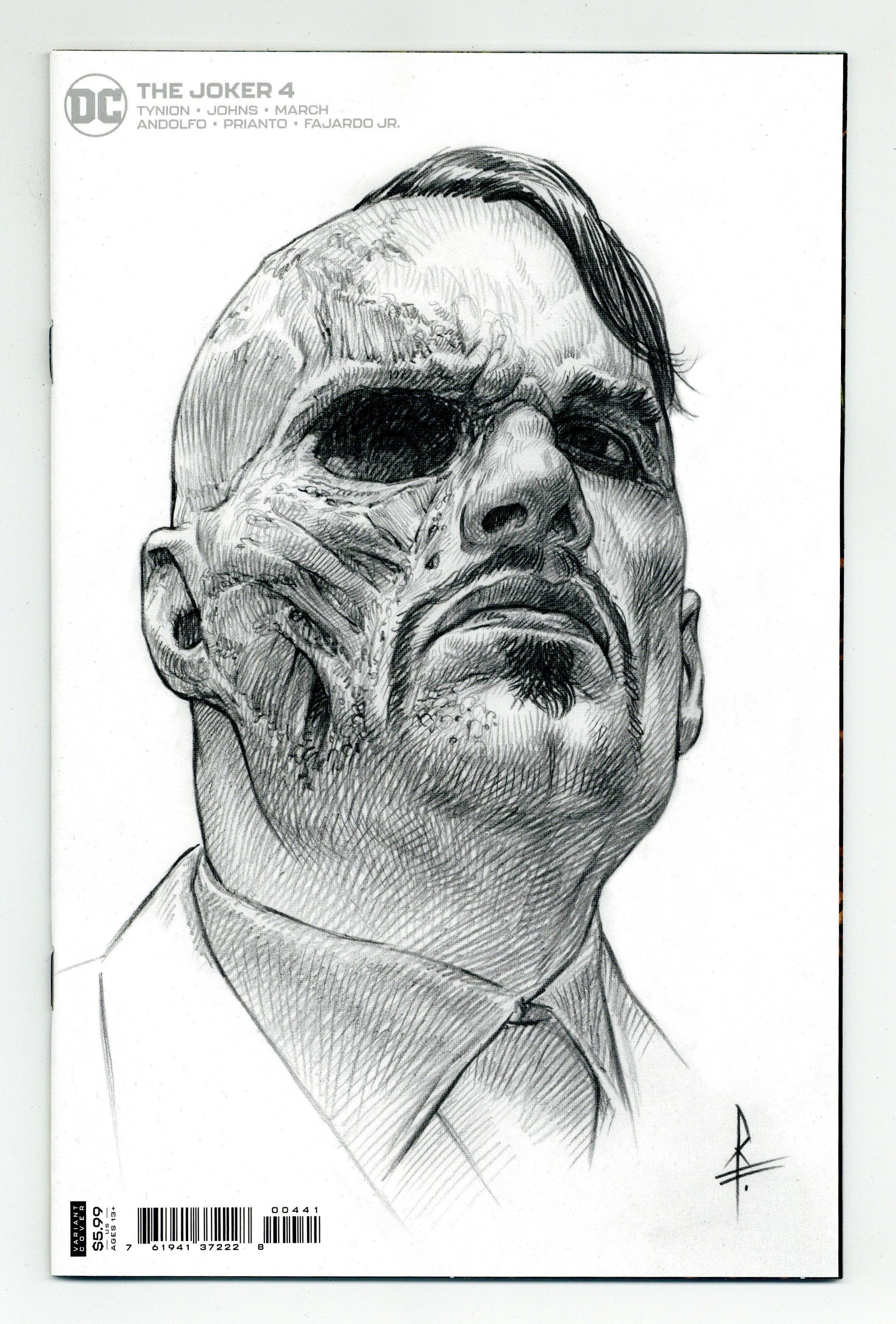 Tags: Joker, Supervillain$2.65Limited 1 for 25 Retailer Incentive Variant Cover. Written by James Tynion IV & Sam Johns. Art by Guillem March & Mirka Andolfo. Cover by Riccardo Federici. Main story: Its murder and mayhem in the jungles of South America with pits The Joker pitted against everyone hunting him! Hes prepared for this massacre in a way that only the Clown Prince of Crime can…but what secret does he whisper to Jim Gordon as the bullets fly?! What is the TRUE mystery?! 40 pages, full color. Rated T+ Cover price $5.99.