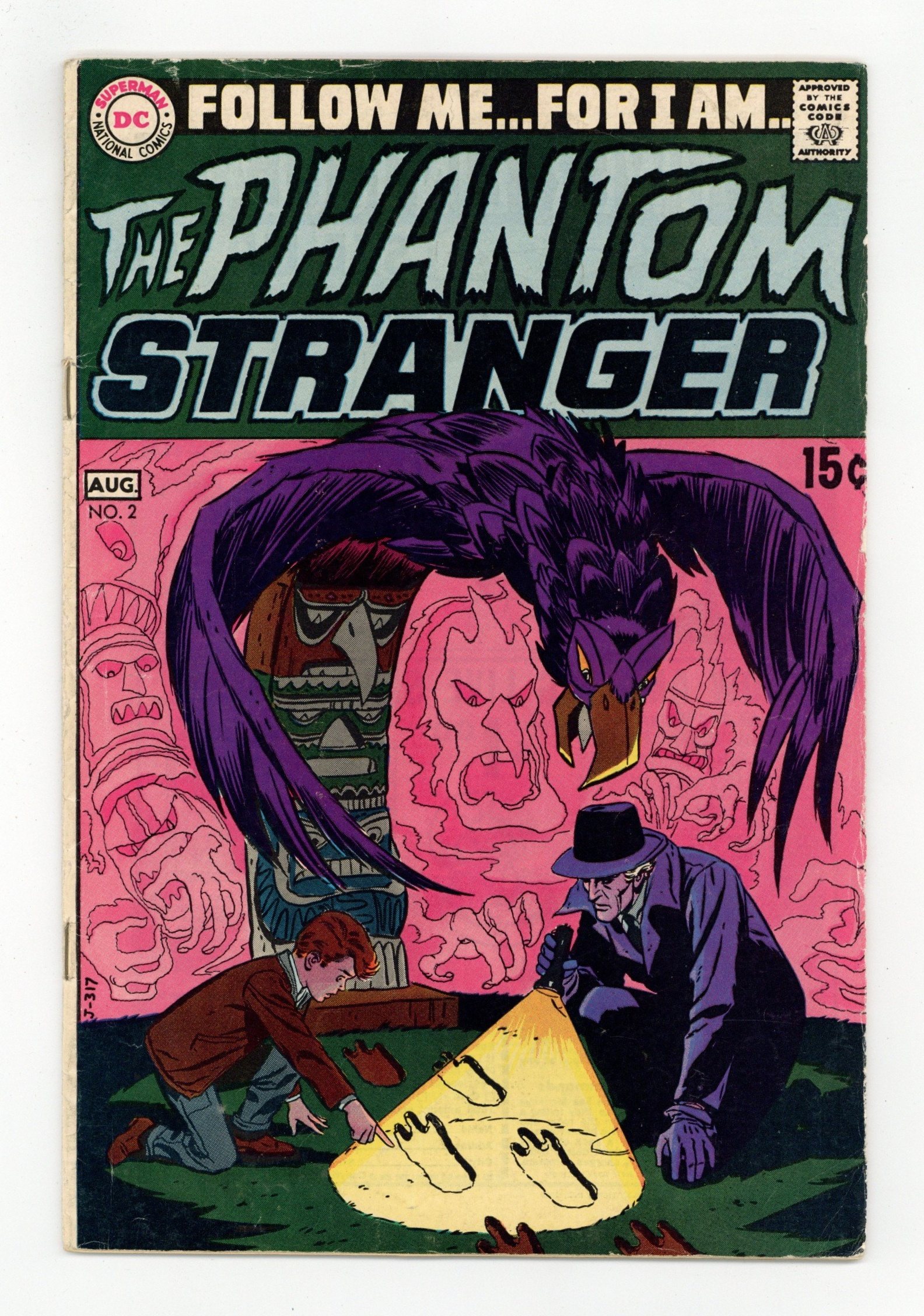 First 15-cent cover price. Cover art by Bill Draut. "The Man Who Died Three Times!", script by Otto Binder, art by Bill Draut; Young Billy Hatton watches his father Cyrus Hatton wander off in a stupor; He gets into his car and crashes into a nearby bridge; Horror-stricken, Billy runs home to tell his mom that his father had died; The Phantom Stranger appears and decides to investigate this spectacle. "The House of Strange Secrets," script by John Broome, pencils by Carmine Infantino, inks by Joe Giella; Stage magician Robart lures a traveler to his house; He wants to kill him and be able to cast a black magic spell; The Phantom Stranger appears on the scene, protects the innocent man and foils Robarts evil plans. "The Girl Who Lived 5,000 Years," script by Ed Herron, art by Leonard Starr; Dr. Thirteen once learned of the existence of a 5,000 year old Babylonian woman named Tateeka who came to life once every one-hundred years at Lamson Manor; A resident of the manor, Mister Hendricks would charge men one-thousand dollars for a life-changing experience with Tateeka; But each of these men would soon commit suicide not long after dating Tateeka. "Fact File #8" article about The Spectre. 36 pgs., full color. Cover price $0.15.