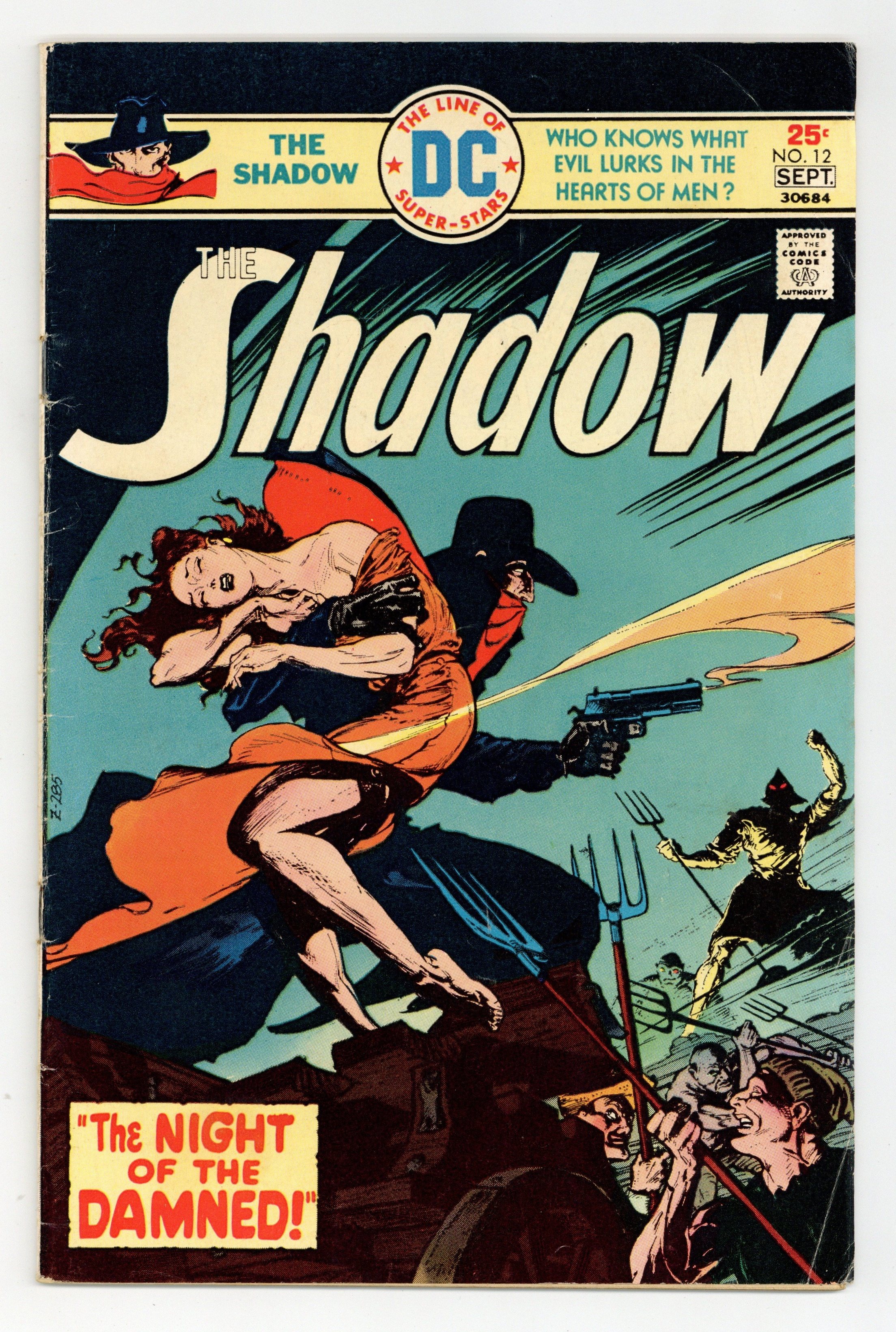 "Night of the Damned." The Shadow goes after a religious cult that has captured Harry and Margo in a historical New England town. Final issue in the series. Script by Denny O'Neil, art by E.R. Cruz. Cover by Michael Kaluta. Cover price $0.25.