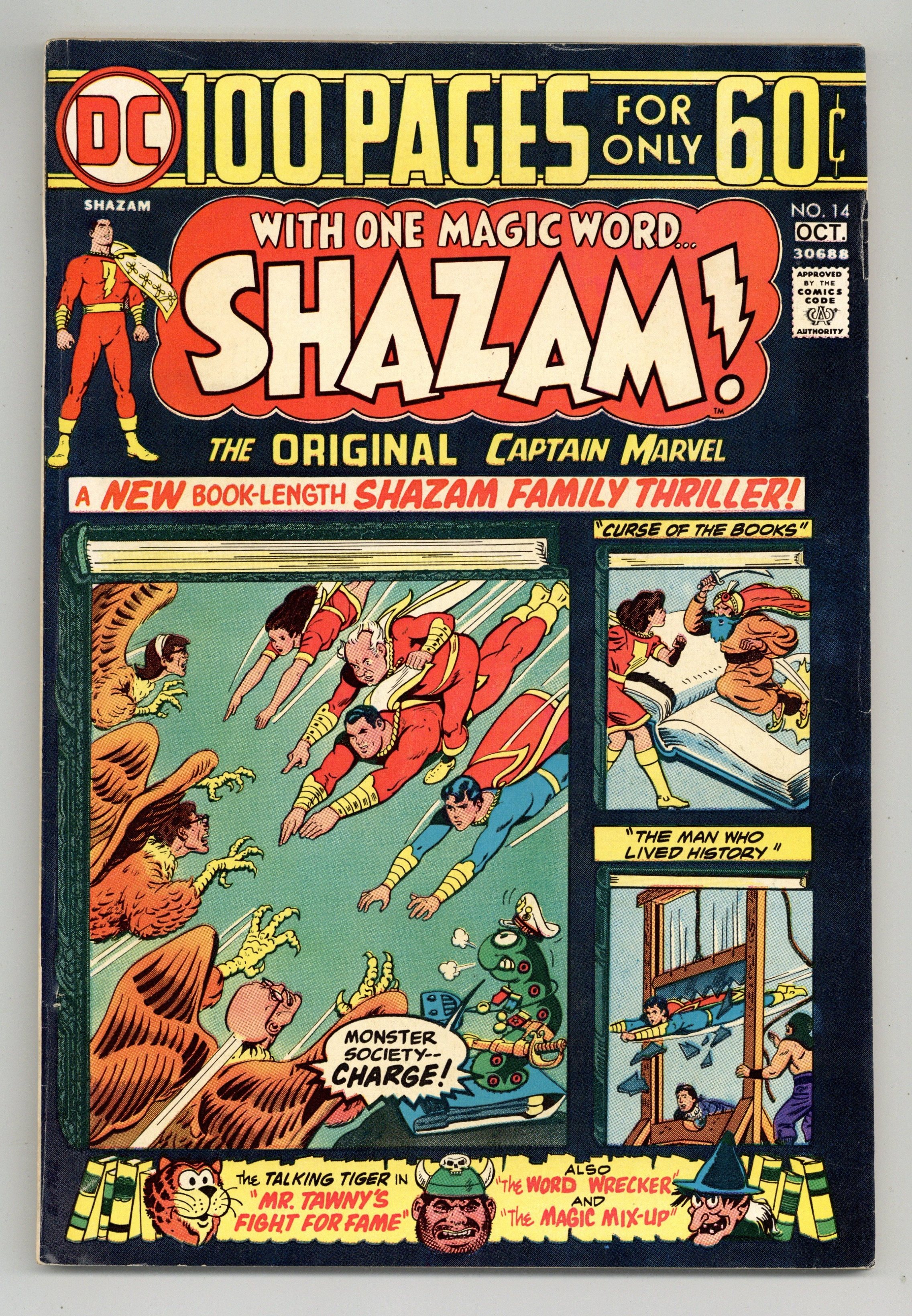100-page giant. New story: the Marvel Family stars in "The Evil Return of the Monster Society." Script by Denny O'Neil, art by Kurt Schaffenberger. Reprints: "The Prophetic Book" (from Captain Marvel Adventures 57 in 1946; art by Pete Costanza), Captain Marvel Jr. in "The Man Who Lived History" (from Captain Marvel Jr. 83 in 1949), "Mr. Tawny's Fight for Fame" (from CMA 126 in 1951; art by C.C. Beck), Mary Marvel in "Curse of the Books" (from Mary Marvel 2 in 1946; art by Jack Binder), "The Magic Mix-Up" (from CMA 102 in 1949; pencils by Beck, inks by Costanza), and the Marvel Family in "The World Wrecker" (from Marvel Family 86 in 1953; art by Kurt Schaffenberger). Bob Oksner cover. Cover price $0.60.