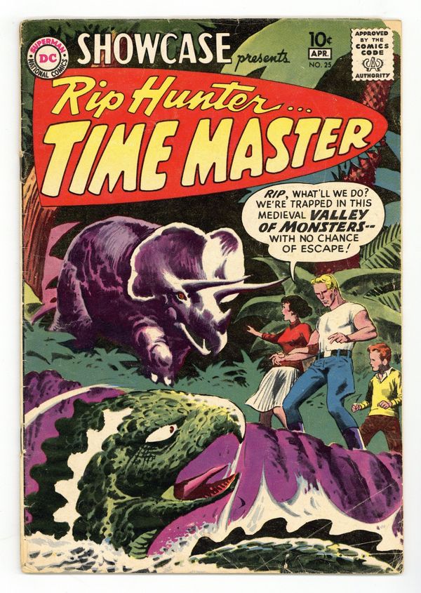 Cover pencils by Joe Kubert, inks by Jack Adler. Captives of the Medieval Sorcerer starring Rip Hunter...Time Master, script by Jack Miller, art by Joe Kubert; As a favor to his friend Professor Blakeslee, Rip agrees to take Doctor Senn into the past; The destination is the island kingdom of Rittannia in the year 960; Upon arrival, Senn takes off on his own; While waiting for his return, Rip and his crew are discovered by King Gamina and his guards; Captured, they are taken to the city and thrown into a dungeon; Out of nowhere, Cholorus the Sorcerer appears to ask why the strangers have not been thrown into the Valley of Monsters. Buzzy's "Famous Books" Quiz public service announcement, script by Jack Schiff, art by Ruben Moreira. Ad for House of Mystery #97, House of Secrets #30, and Tales of the Unexpected #47. From Rocks to Rockets text article. 36 Pages, Full Color. Cover price $0.10.