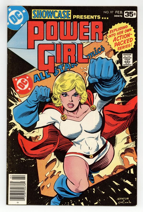 Tags: Anthology / Collection, Power Girl$27.50Cover pencils by Joe Staton, inks by Joe Orlando. "Power Girl," script by Paul Levitz, pencils by Joe Staton inks by Joe Orlando; Power Girl breaks through the roof of Gotham Citys Central Electronics factory, interrupting a robbery in progress; The thieves boss is looking for the micro-transformers produced by Central, and claims that even Power Girl cant stop them; Power Girl goes about proving them wrong, by taking out three of the four high-tech thieves; A ricocheting bullet delays Power Girl from apprehending the fourth thief, who flees the scene; The thief uses a high-tech escape vehicle, and takes a detour through the Gotham City Rail Line; This barely slows Power Girl down, who catches up to the thief, and disarms his explosive suicide jacket; Power Girl relaxes outside the city, thinking back on her life; She remembers her life on Argo City, when Zor-L and Allura, her parents, put her in an escape pod to escape Argo Citys death; Her rocket sent her to Earth, to become Power Girl; After calming down from her trip down memory lane, she returns to Gotham. Batman stars in a one-page Hostess ad, "Sable Lady." 36 Pages, Full Color. Cover price $0.35.