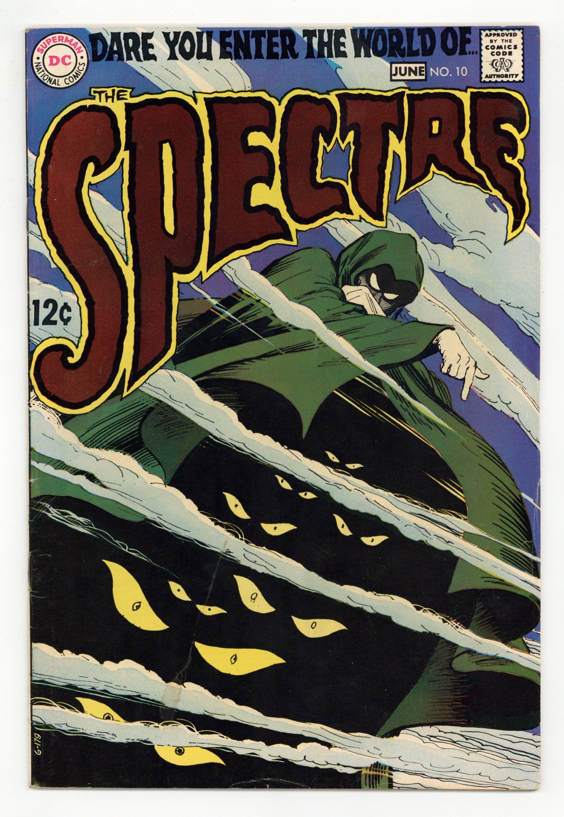 $17.25Written by Mike Friedrich. Art by Jerry Grandenetti and George Roussos. Cover by Nick Cardy. Spectre passes judgment on Charles Felix on his birthday. Written by Steve Skeates. Art by Jose Delbo. Will Johnny sacrifice his freedom to not run over a child during his getaway? Written by Jack Miller. Art by Jack Sparling. How much abuse can Allie take before he plans a murder? Written by Jack Miller. Art by Jack Sparling and George Roussos. The Spectre must discover how Vargo is killing his enemies. History of the Spectre feature, art by Murphy Anderson. 36 pages, full color. $0.12. Cover price $0.12.