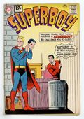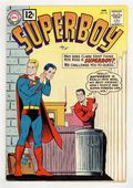 Tags: Superman$20.00Cover pencils by Curt Swan, inks by Stan Kaye. "The Superboy Revenge Squad," art by George Papp; Superboy hypnotizes himself to believe he is ordinary to fool the Superboy Revenge Squad; Pete Ross pretends to be Superboy and has Clark inadvertently performing super tricks. Varsity Vic humor page by Henry Boltinoff. Giant Superman Annual ad. The Secret of the Happy Pig! public service announcement starring Peter Porkchops, script by Jack Schiff, art by Rube Grossman. Shorty humor half-page by Henry Boltinoff. "The Boy of Steel's Super-Initiation!", art by George Papp; When Clark Kent fails the cruel initiation tests of a high school fraternity, he pledges as Superboy to teach the frat leader a well-deserved lesson. Ad for Action Comics, Superman's Pal, Jimmy Olsen, and Adventure Comics. Full page ad for Batman Annual #2, on sale Nov. 16th, 1962. 36 Pages, Full Color. Cover price $0.12.