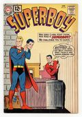 Tags: Superman$25.00Cover pencils by Curt Swan, inks by Stan Kaye. "The Superboy Revenge Squad," art by George Papp; Superboy hypnotizes himself to believe he is ordinary to fool the Superboy Revenge Squad; Pete Ross pretends to be Superboy and has Clark inadvertently performing super tricks. Varsity Vic humor page by Henry Boltinoff. Giant Superman Annual ad. The Secret of the Happy Pig! public service announcement starring Peter Porkchops, script by Jack Schiff, art by Rube Grossman. Shorty humor half-page by Henry Boltinoff. "The Boy of Steel's Super-Initiation!", art by George Papp; When Clark Kent fails the cruel initiation tests of a high school fraternity, he pledges as Superboy to teach the frat leader a well-deserved lesson. Ad for Action Comics, Superman's Pal, Jimmy Olsen, and Adventure Comics. Full page ad for Batman Annual #2, on sale Nov. 16th, 1962. 36 Pages, Full Color. Cover price $0.12.