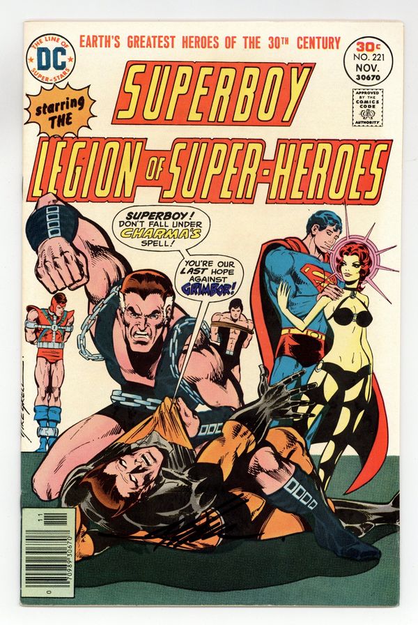 Cover art by Mike Grell. The Trillion-Dollar Trophies, script by Jim Shooter (from a suggestion by Ken Klaczak), pencils by Mike Grell, inks by Bob Wiacek; the Legion of Super-Heroes battles a master of chains and restraints and woman who can charm men into becoming her slave. Hostess Twinkie ad starring Green Lantern, pencils by Curt Swan, inks by Vince Colletta. 36 Pages, Full Color. Cover price $0.30.