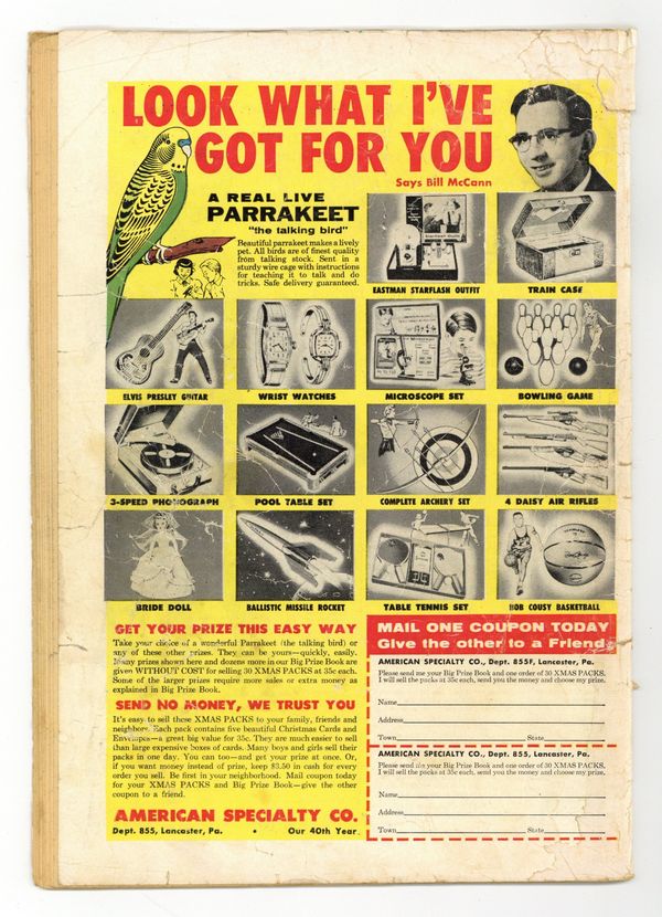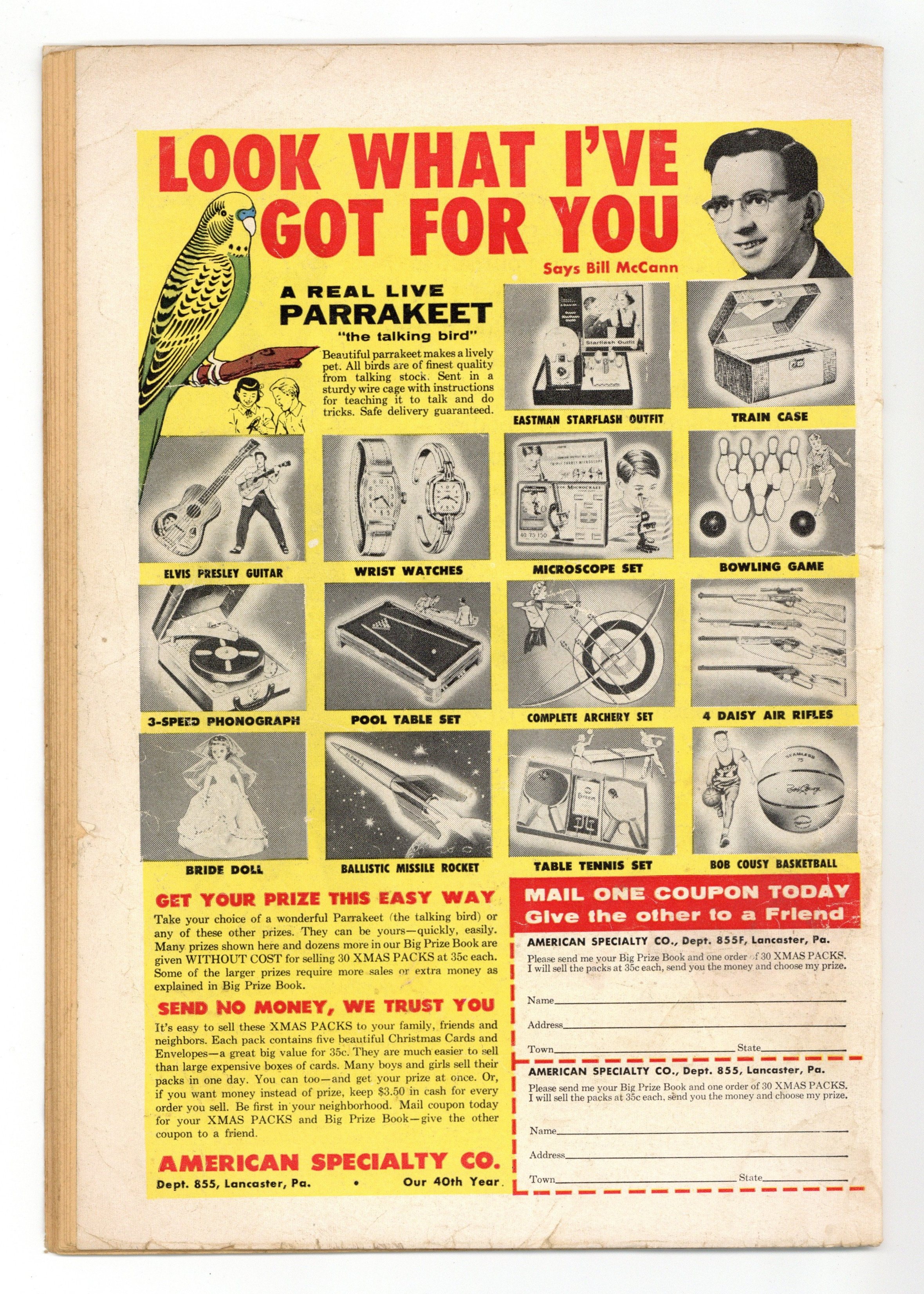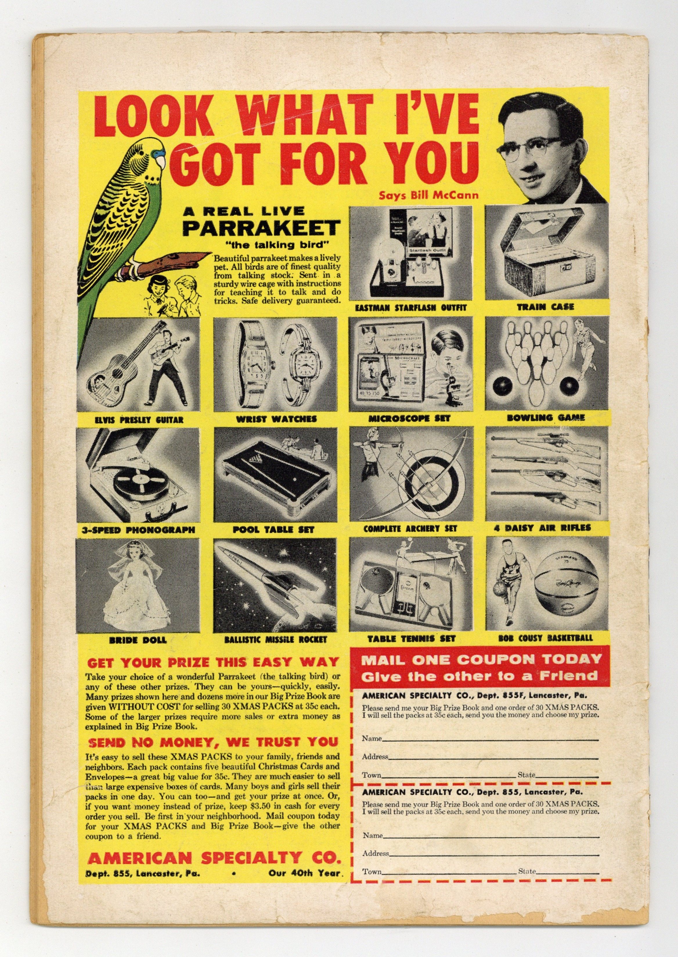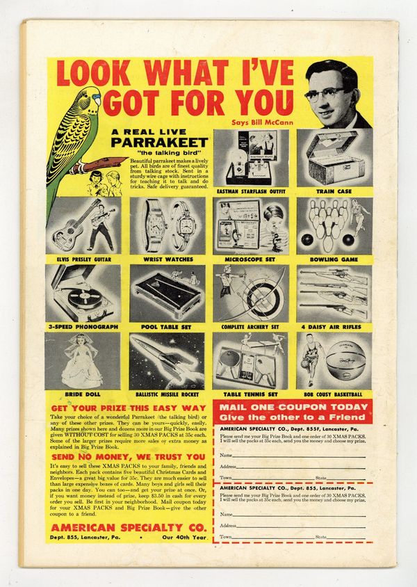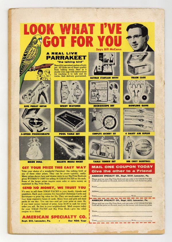 Cover pencils by Curt Swan, inks by Stan Kaye. Lois Lane's Super-Dream, script by Jerry Coleman, art by Kurt Schaffenberger; Lois dreams she and Clark gain super-powers and become Power-Girl and Power-Man. Clark Kent's College Days, script by Jerry Coleman, art by Al Plastino; Superman recalls his college days, particularly the professor who tried to scientifically prove that Clark Kent was Superboy. Superman's New Power!, pencils by Wayne Boring, inks by Stan Kaye; When Superman is exposed to the radiation from the explosion of an alien space ship, he loses his powers but gains the ability to create a miniature version of himself. 36 Pages, Full Color. NOTE: A 2023 DC HeroClix was produced based on this cover. - Odinson, mycomicshop.com Archivist Cover price $0.10.