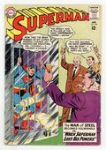 Tags: Superman$15.25Cover art by Kurt Schaffenberger. The Mortal Superman! [chapter 1] starring Rocks Haney, script by Leo Dorfman, art by Al Plastino; Superman loses his powers and is vulnerable to his enemies. The Cage of Doom! [chapter 2]. The Super-Cop of Metropolis! starring Superman, Krypto (guest appearance), Jimmy Olsen, and Perry White, script by Jerry Siegel, pencils by Curt Swan, inks by George Klein. 36 Pages, Full Color. Cover price $0.12.