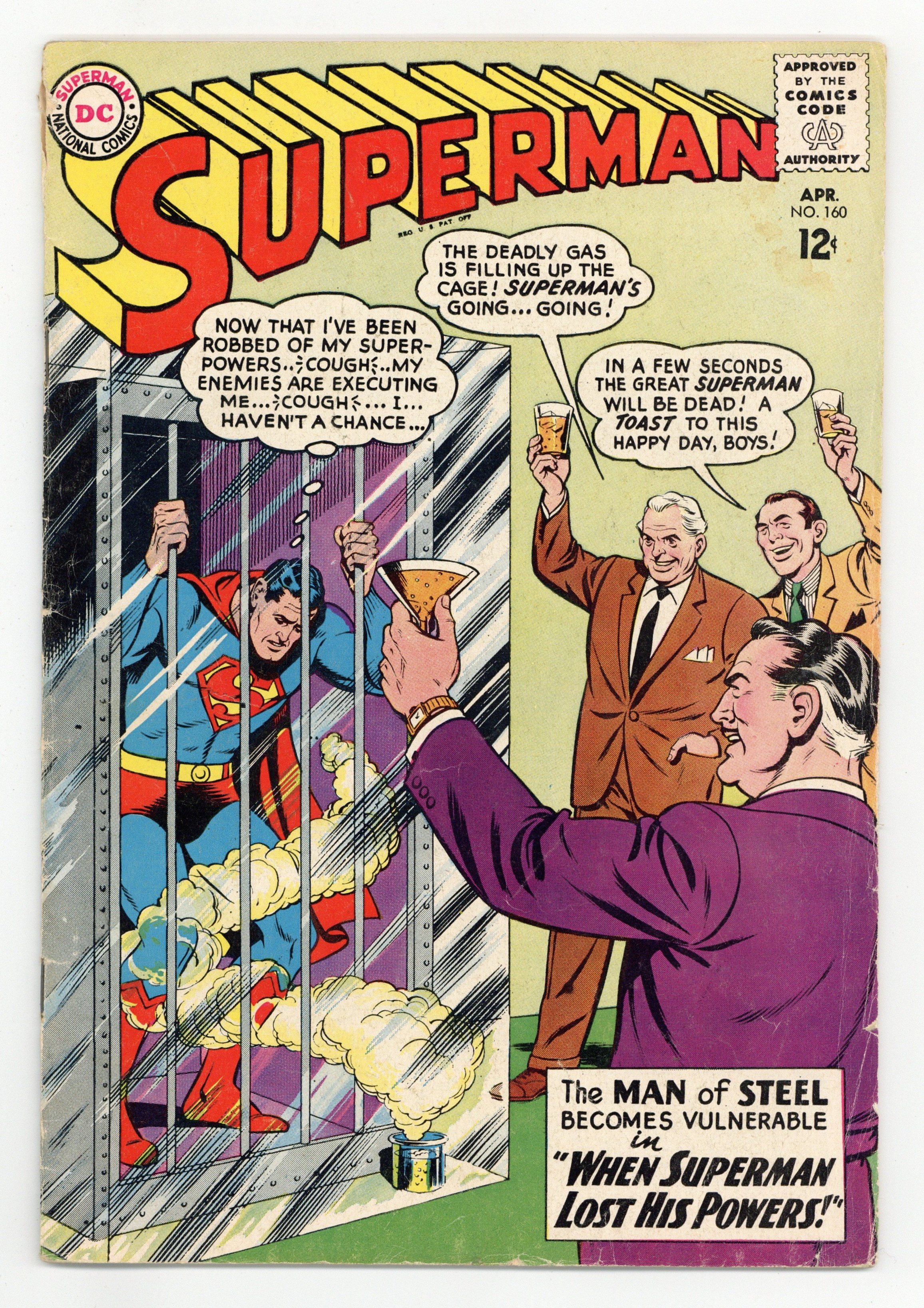 Cover art by Kurt Schaffenberger. The Mortal Superman! [chapter 1] starring Rocks Haney, script by Leo Dorfman, art by Al Plastino; Superman loses his powers and is vulnerable to his enemies. The Cage of Doom! [chapter 2]. The Super-Cop of Metropolis! starring Superman, Krypto (guest appearance), Jimmy Olsen, and Perry White, script by Jerry Siegel, pencils by Curt Swan, inks by George Klein. 36 Pages, Full Color. Cover price $0.12.