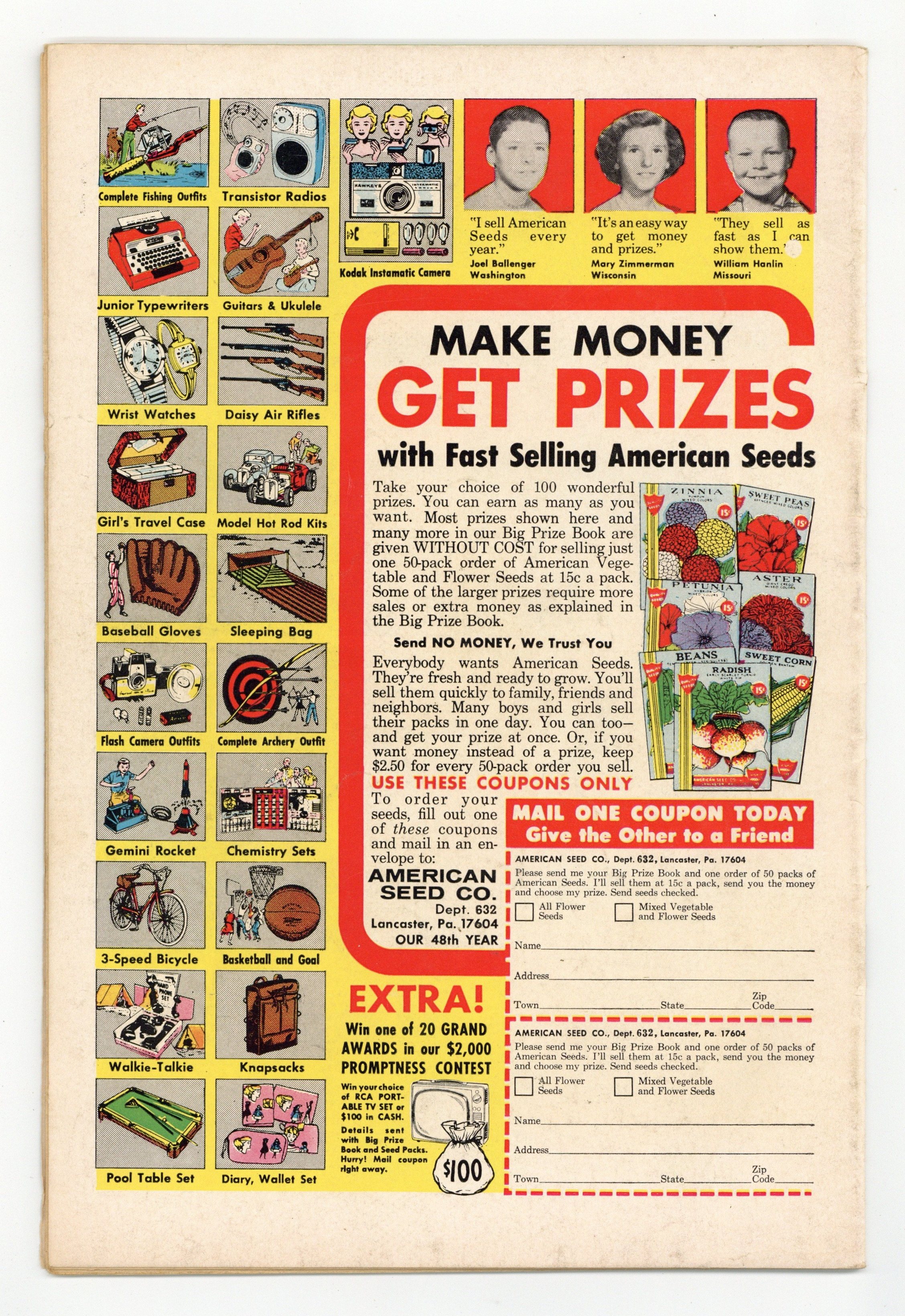 Cover pencils by Curt Swan, inks by George Klein. Superman's Achilles' Heel!, art by Pete Costanza; The Man of Steel resorts to wearing a steel box on his right hand after Red Kryptonite gives him a vulnerable "Achilles' Heel". Target Superman! [part 1], art by Jim Mooney; Rich Dolores Rivera uses her fortune to try to snare Superman. The Irresistible Clark Kent! [part 2]; Vol-Don of the Look-Alike Squad of Kandor impersonates Clark Kent to help Superman. 36 Pages, Full Color. Cover price $0.12.