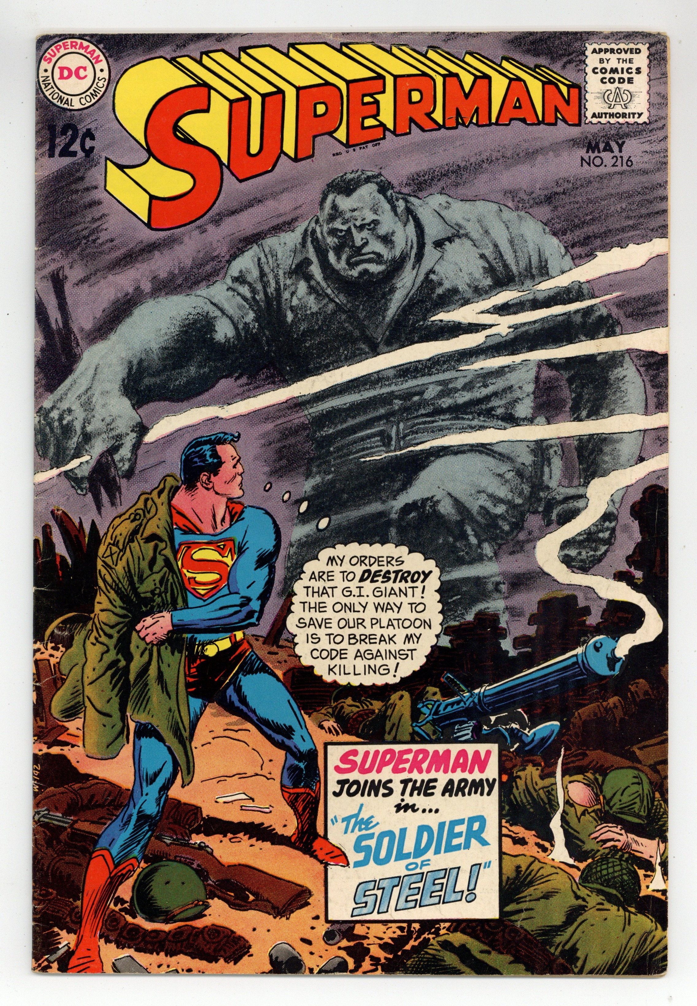 Cover art by Joe Kubert. The Soldier of Steel!, script by Robert Kanigher, pencils by Ross Andru, inks by Mike Esposito; Superman fights in Vietnam and battles a G.I. Giant. Last 12-cent cover-priced issue. 36 Pages, Full Color. Cover price $0.12.