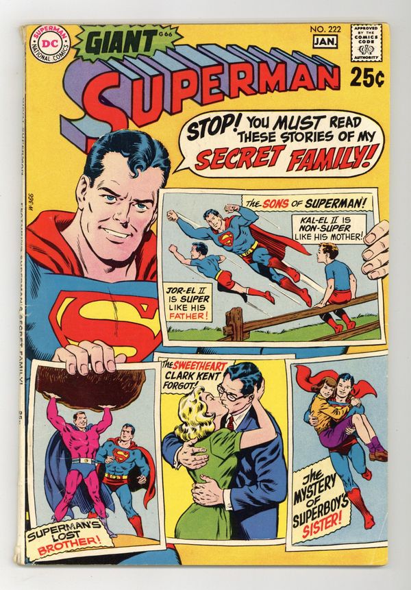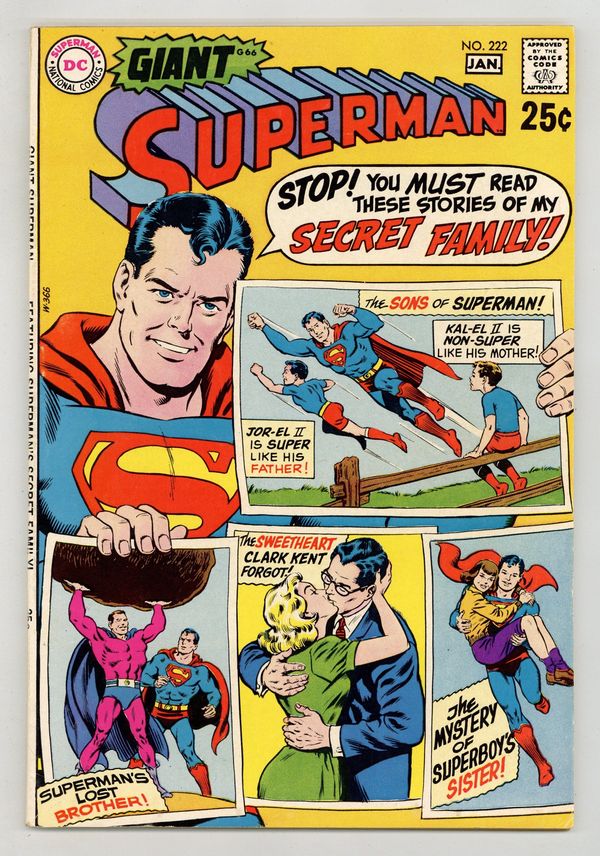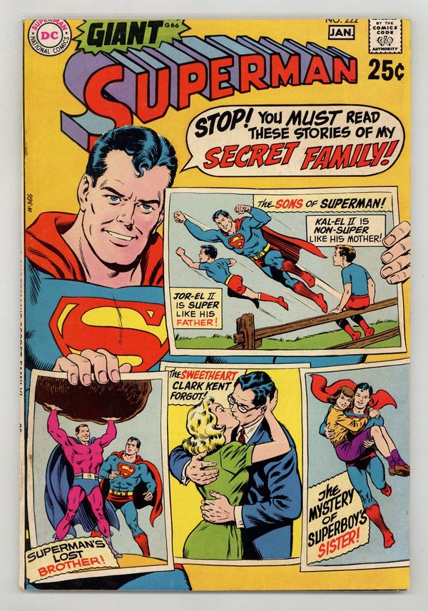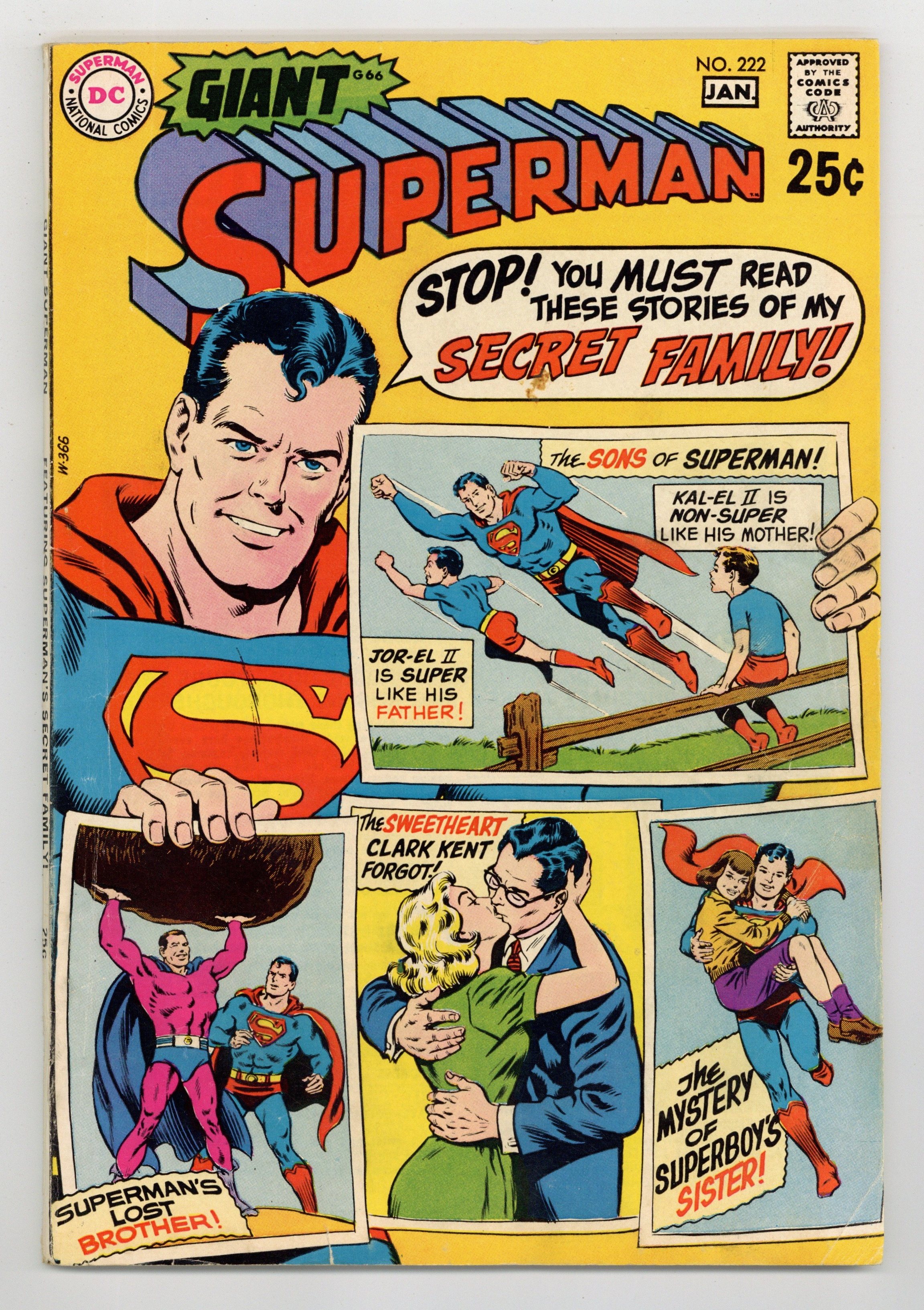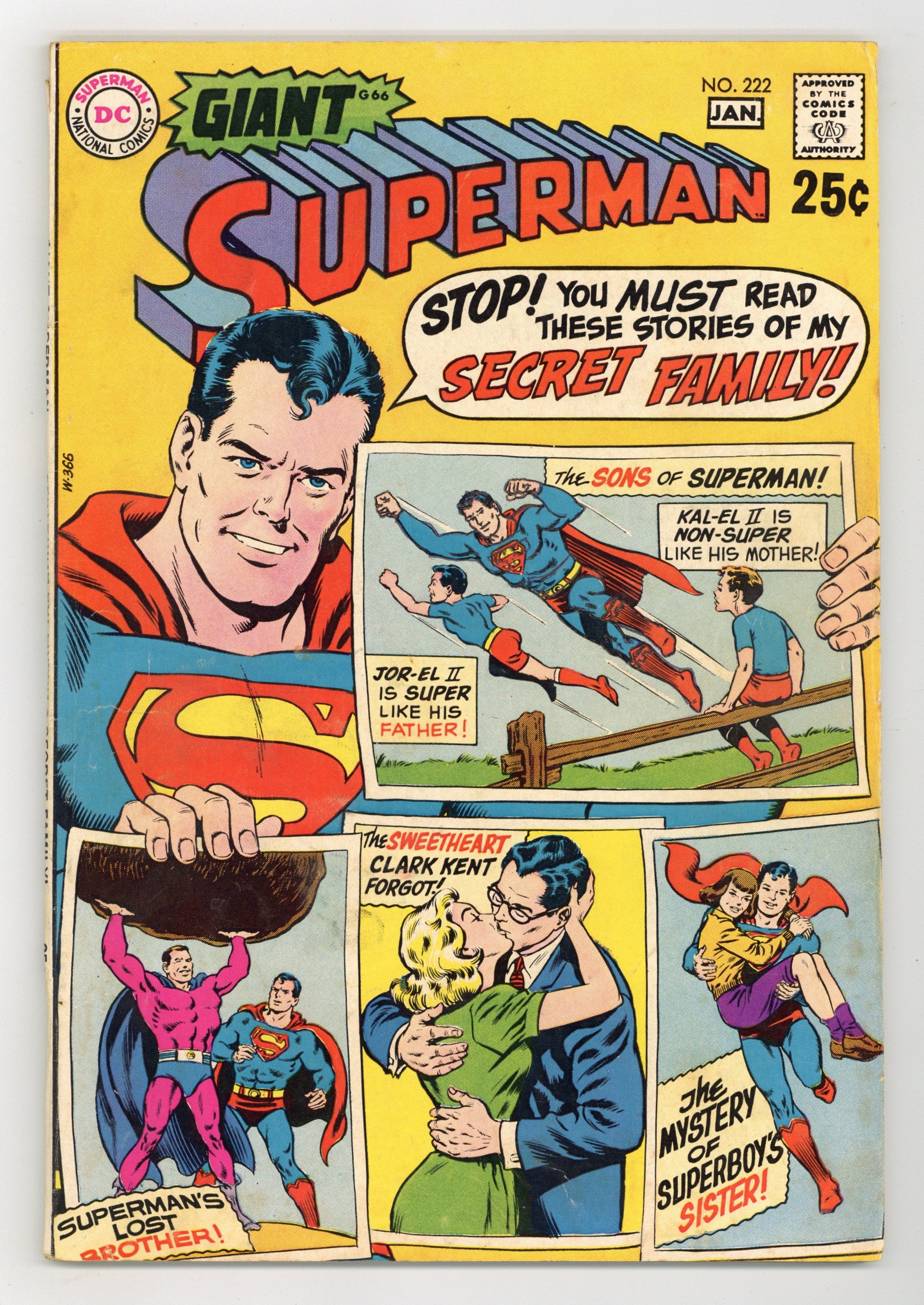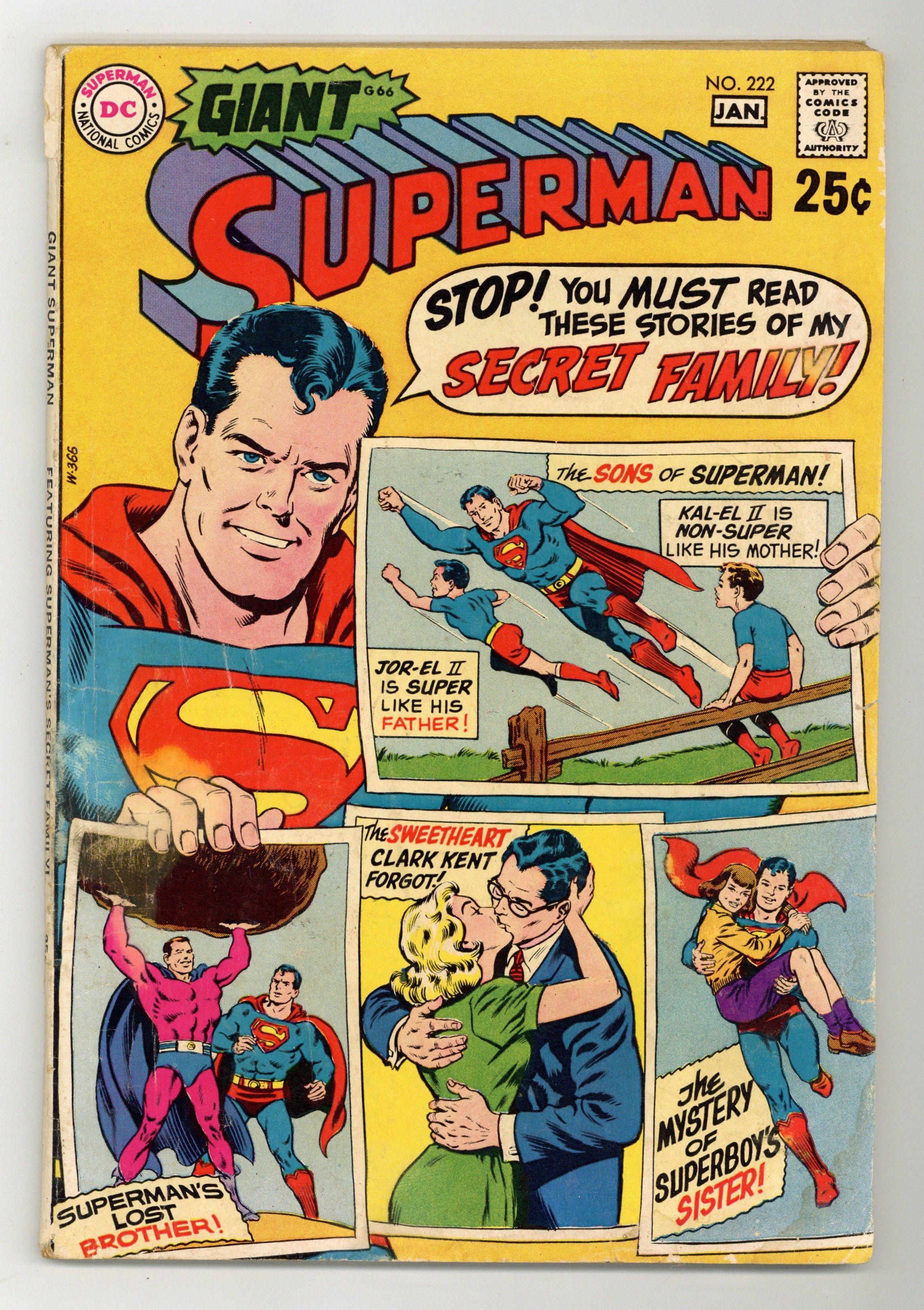 DC Giant featuring reprints. Superman's Lost Brother!, script by Edmond Hamilton, art by Al Plastino; When Halk Kar crashes on Earth, the note he carries in Jor-El's handwriting makes Superman suspect that Halk Kar is his older brother. The Sweetheart Superman Forgot!, script by Jerry Siegel, art by Al Plastino. Jor-El II and Kal-El II, script by Edmond Hamilton, pencils by Curt Swan, inks by George Klein; an imaginary story. The New Nightwing and Flamebird!, script by Edmond Hamilton, pencils by Curt Swan, inks by George Klein; Superman's sons become Nightwing II and Flamebird II. Kal-El II's Mission to Krypton!, script by Edmond Hamilton, pencils by Curt Swan, inks by George Klein. The Secret of Superboy's Sister, script by Al Schwartz, art by Al Plastino. 68 Pages, Full Color. Cover price $0.15.