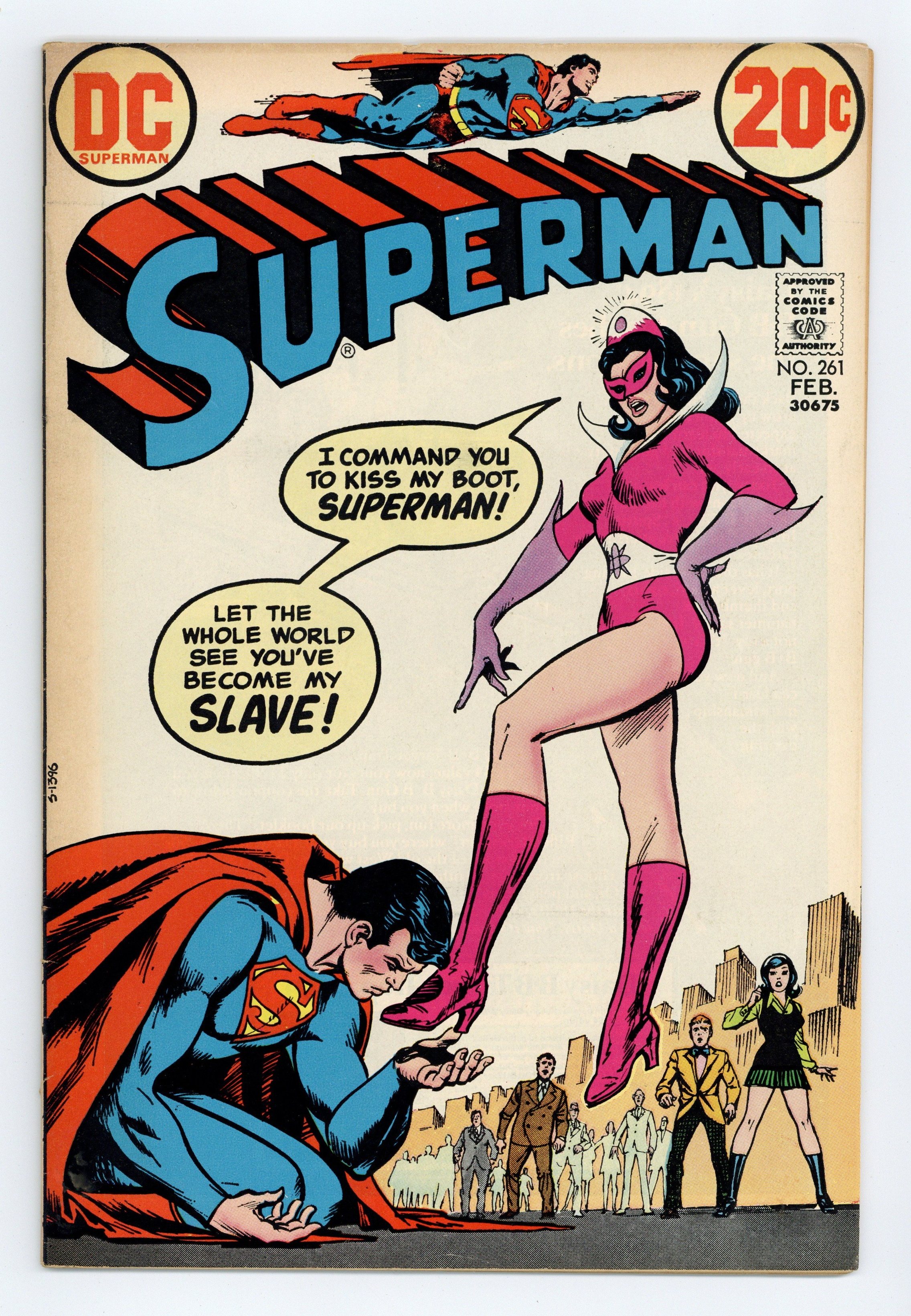 Tags: Superman$85.00Cover art by Nick Cardy. Slave of Star Sapphire!, script by Cary Bates, pencils by Curt Swan, inks by Murphy Anderson; Carol Ferris thinks Superman is attacking Green Lantern, so she becomes Star Sapphire to fight him. 36 Pages, Full Color. Cover price $0.20.