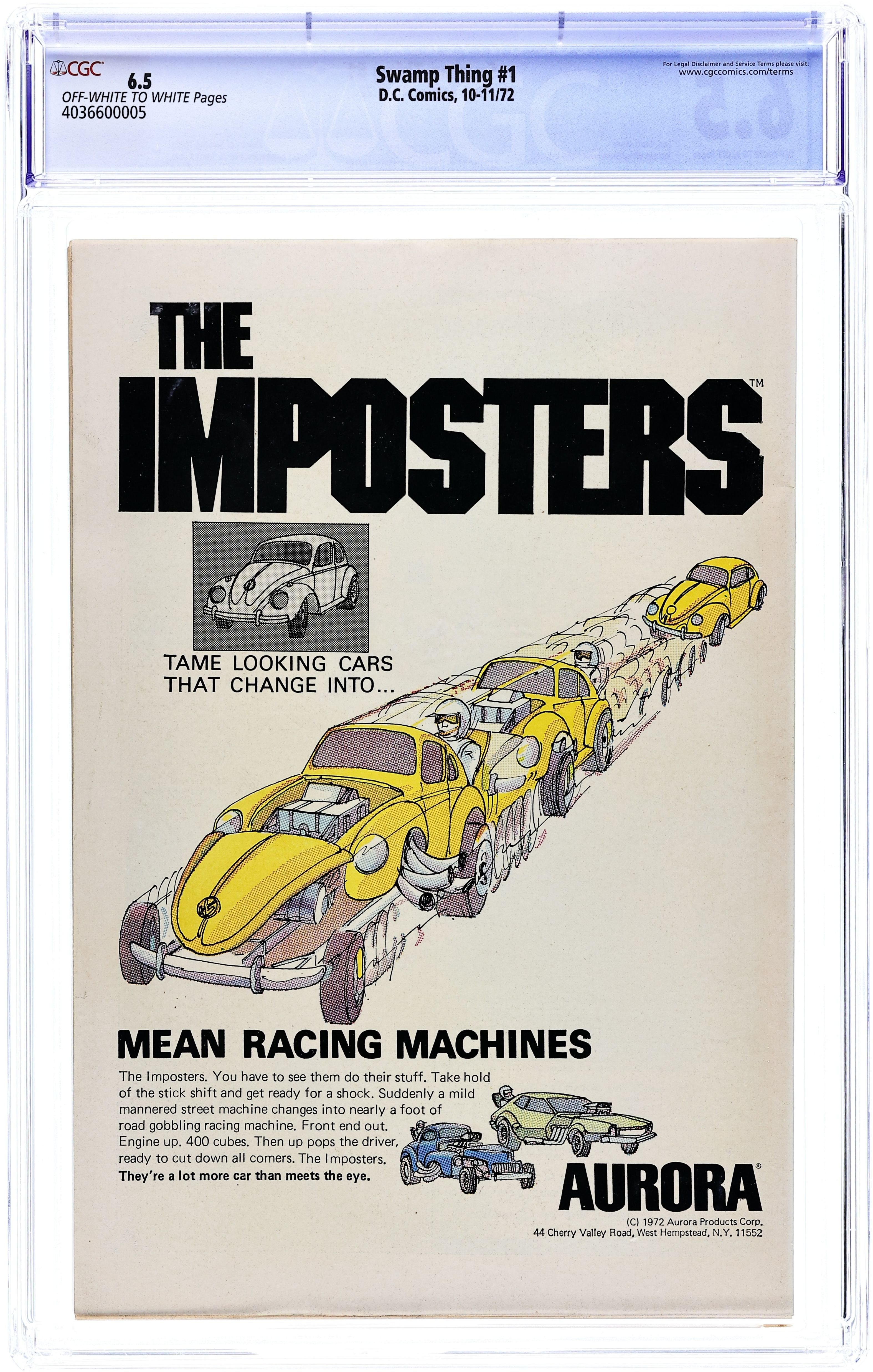 $170.00"Dark Genesis." While working on a restorative formula (that can make forests out of deserts) in the Louisiana swamps, scientist Alec Holland is killed by a bomb set off by Mr. E., who wants the formula. Shortly thereafter, a humanoid plant being rises from the swamp, created from the body of Holland, the chemicals in the formula, and the strange forces in the swamp. 1st appearance of Alec and Linda Holland. 1st appearance of Matt Cable. (Swamp Thing himself first appeared in House of Secrets 92). Script by Len Wein, art and cover by Berni Wrightson. Includes brief bios of Wein and Wrightson. Cover price $0.20.