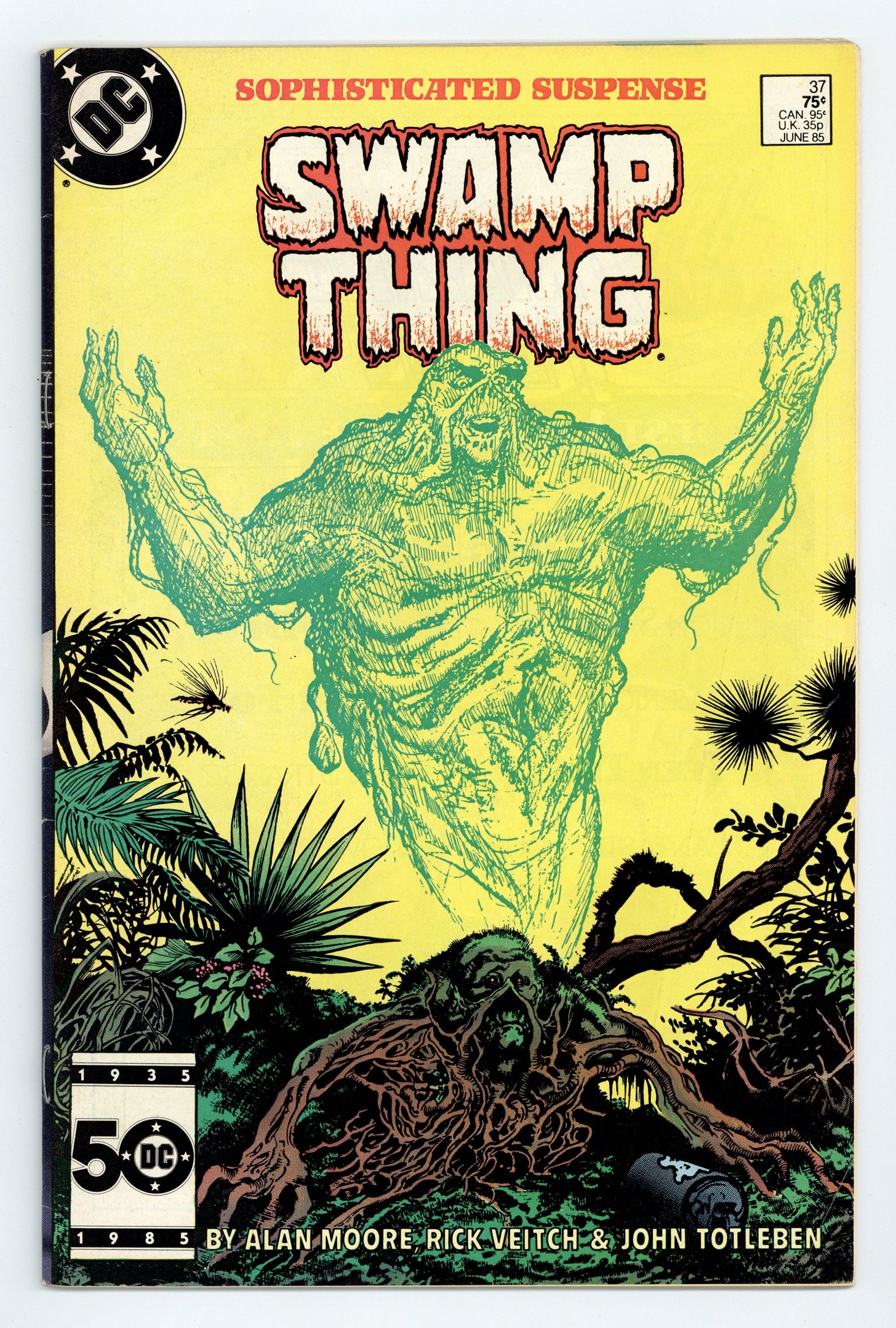 Direct Edition. "Growth Patterns!" Written by Alan Moore, with art by Rick Veitch and John Totleben. Cover by Stephen Bissette and Totleben. New "Growth Patterns" and other strange abilities emerge in Swamp Thing as he fights for survival. NOTE: 1st appearance of John Constantine, Hellblazer. 36 pages, full color. Cover price $0.75.