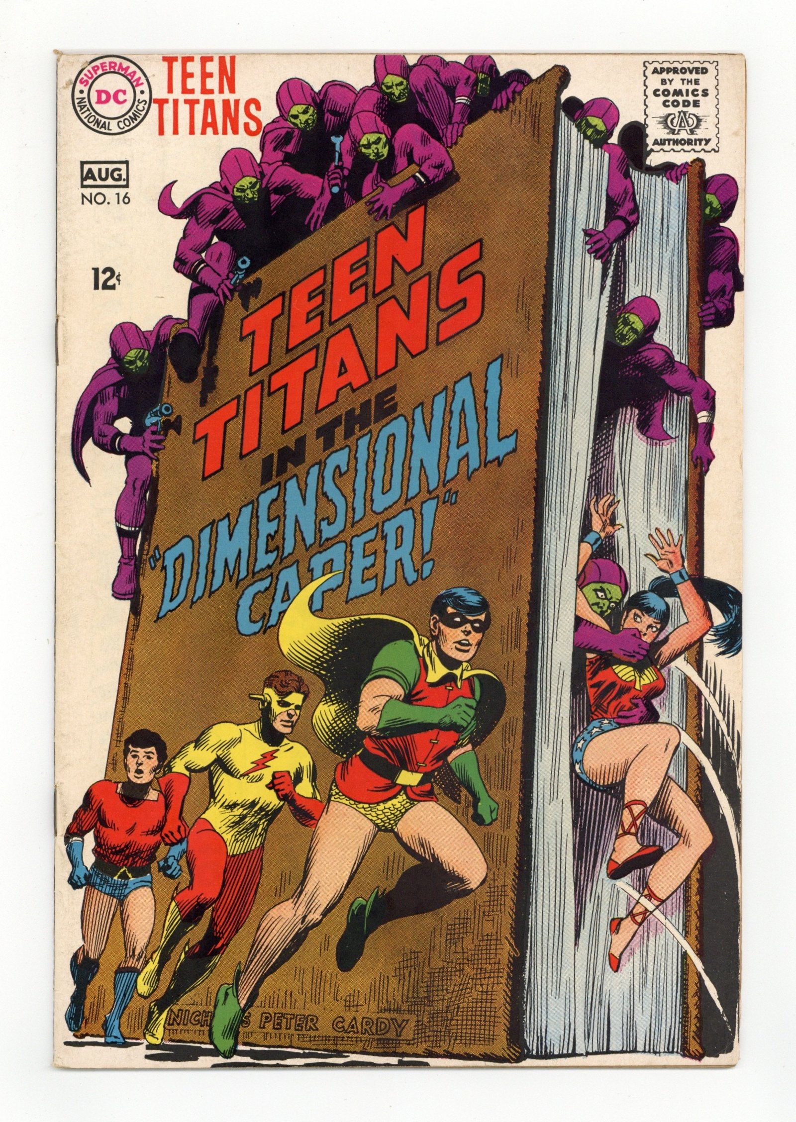 Tags: Teen Titans$15.50Written by Bob Haney. Art and cover by Nick Cardy. The Titans prevent an invasion from another dimension that occupies the same space as Chet Walters' school. Cap's Hobby Hints by Henry Boltinoff. 36 Pages, Full Color. Cover price $0.12.