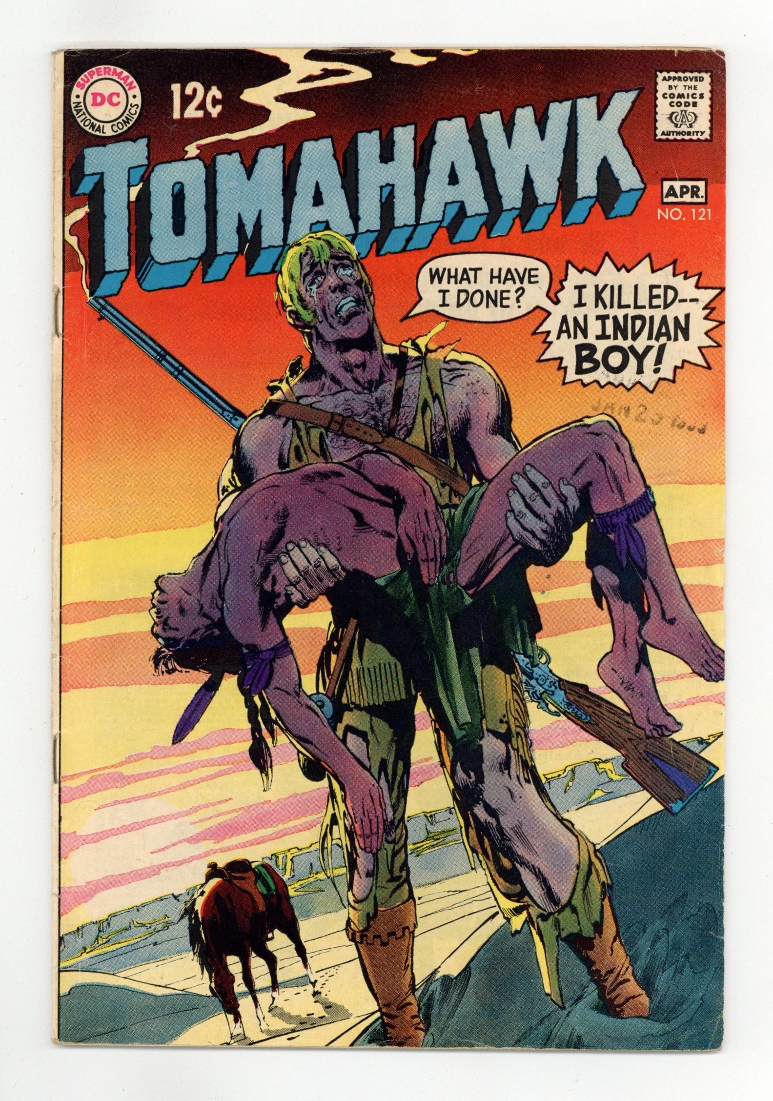 Cover art by Neal Adams. To Kill a Ranger! starring Tomahawk, script by Robert Kanigher, art by Frank Thorne; Tomahawk mourns a dead Indian boy that he killed. Aim Your Cannons at Me starring Tomahawk, script by Howard Liss, art by Frank Thorne. Statement of ownership--average print run 298,000; average paid circulation 157,250. 36 Pages, Full Color. Cover price $0.15.