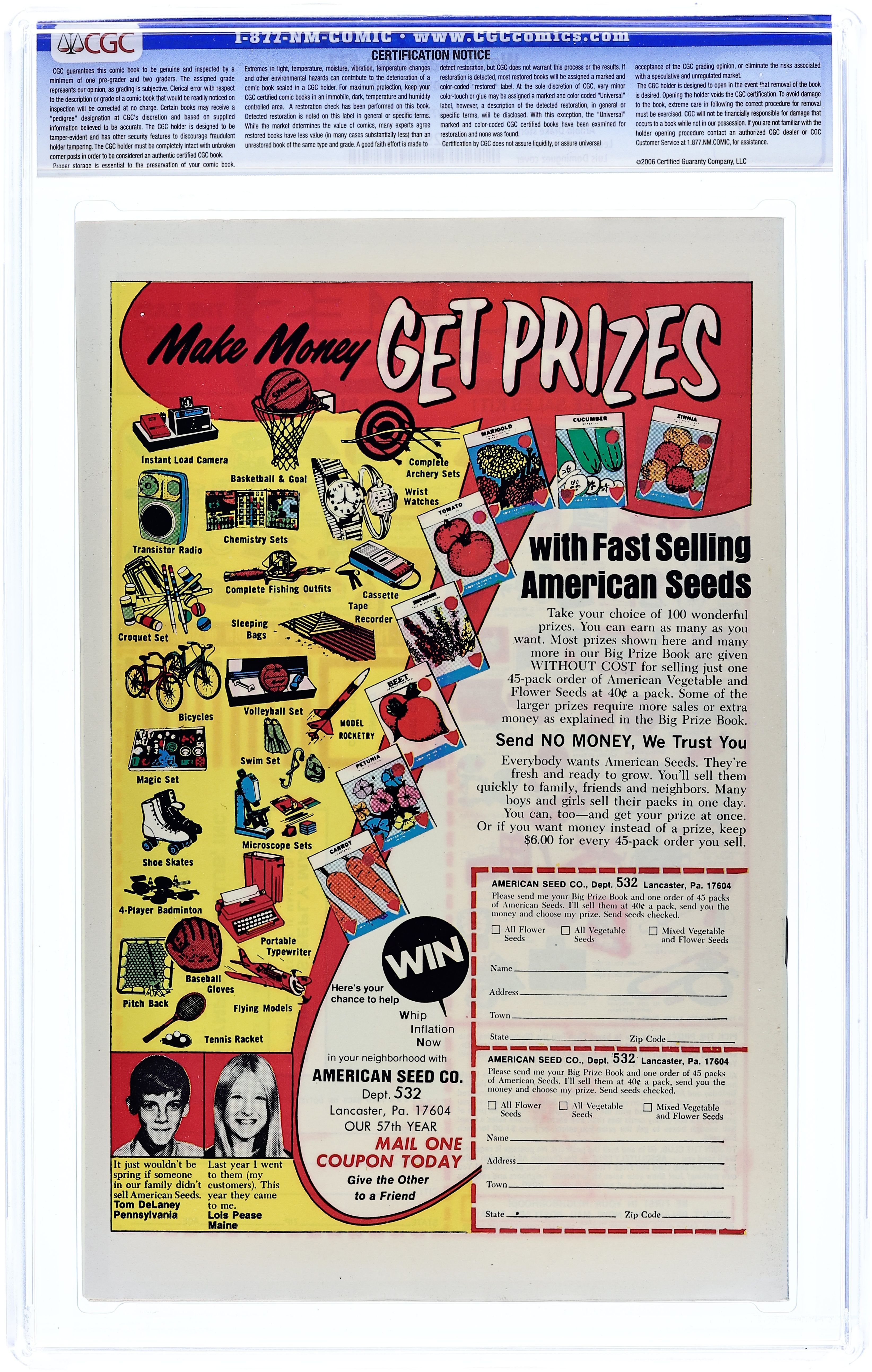 Cover art by Luis Dominguez. The Three Wars of Don Q.!, script by Arnold Drake, art by Leopoldo Duranona; set in 1938--one year before World War II--in Spain, as well as four centuries prior and the year 3254 (the 6th year of World War XII). 32 pgs. $0.25. Cover price $0.25.