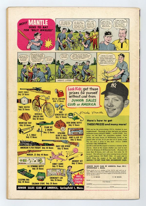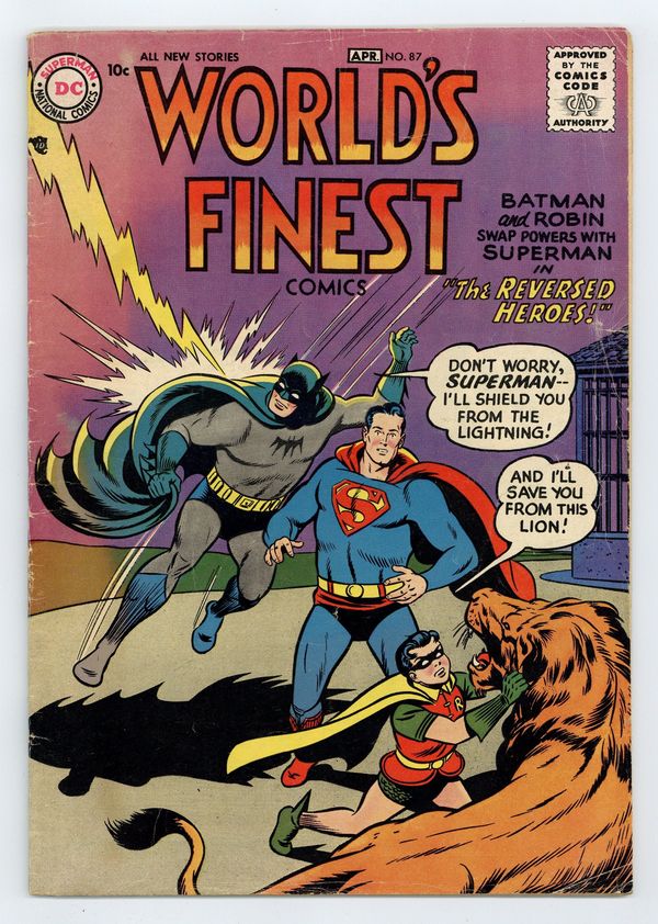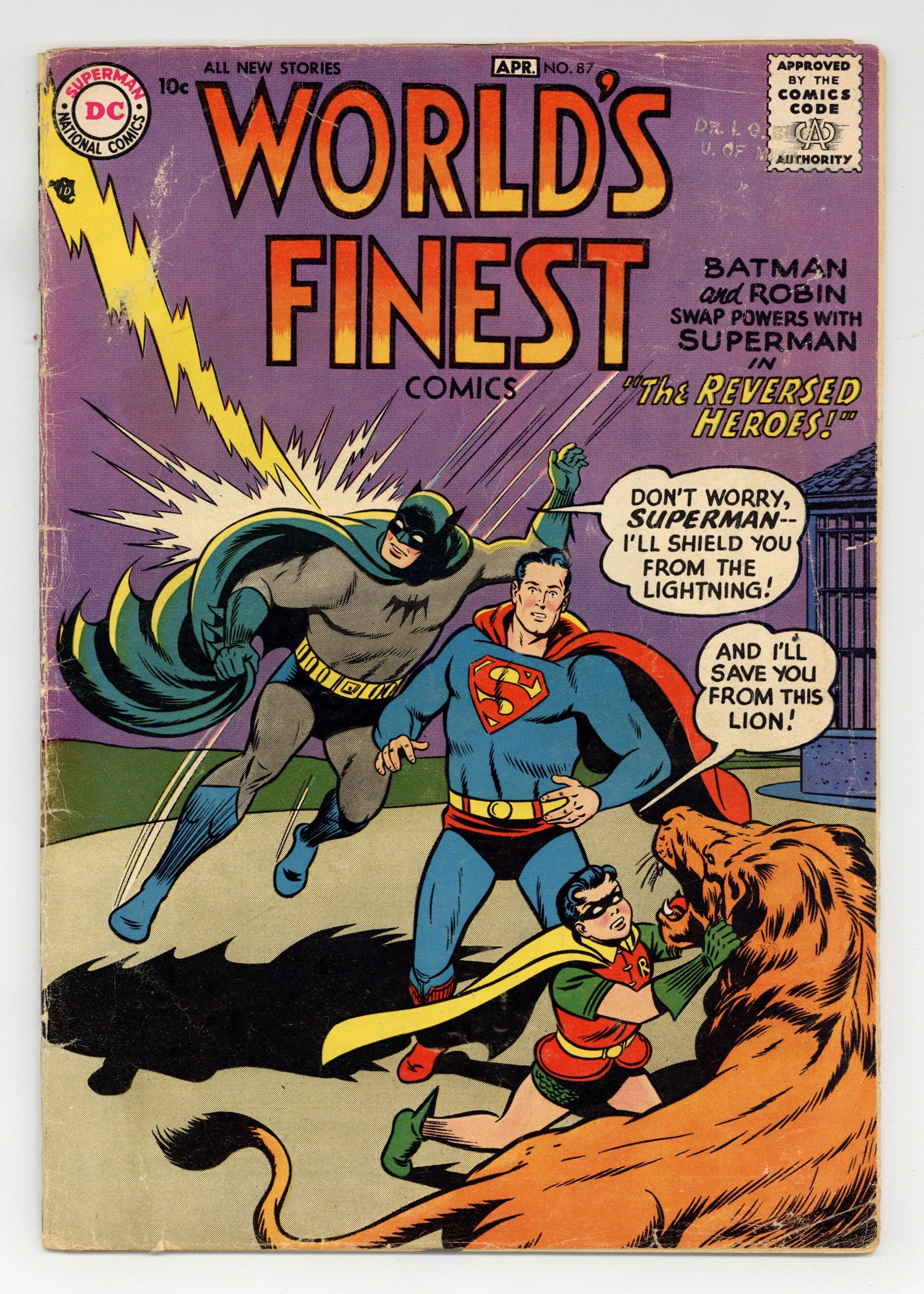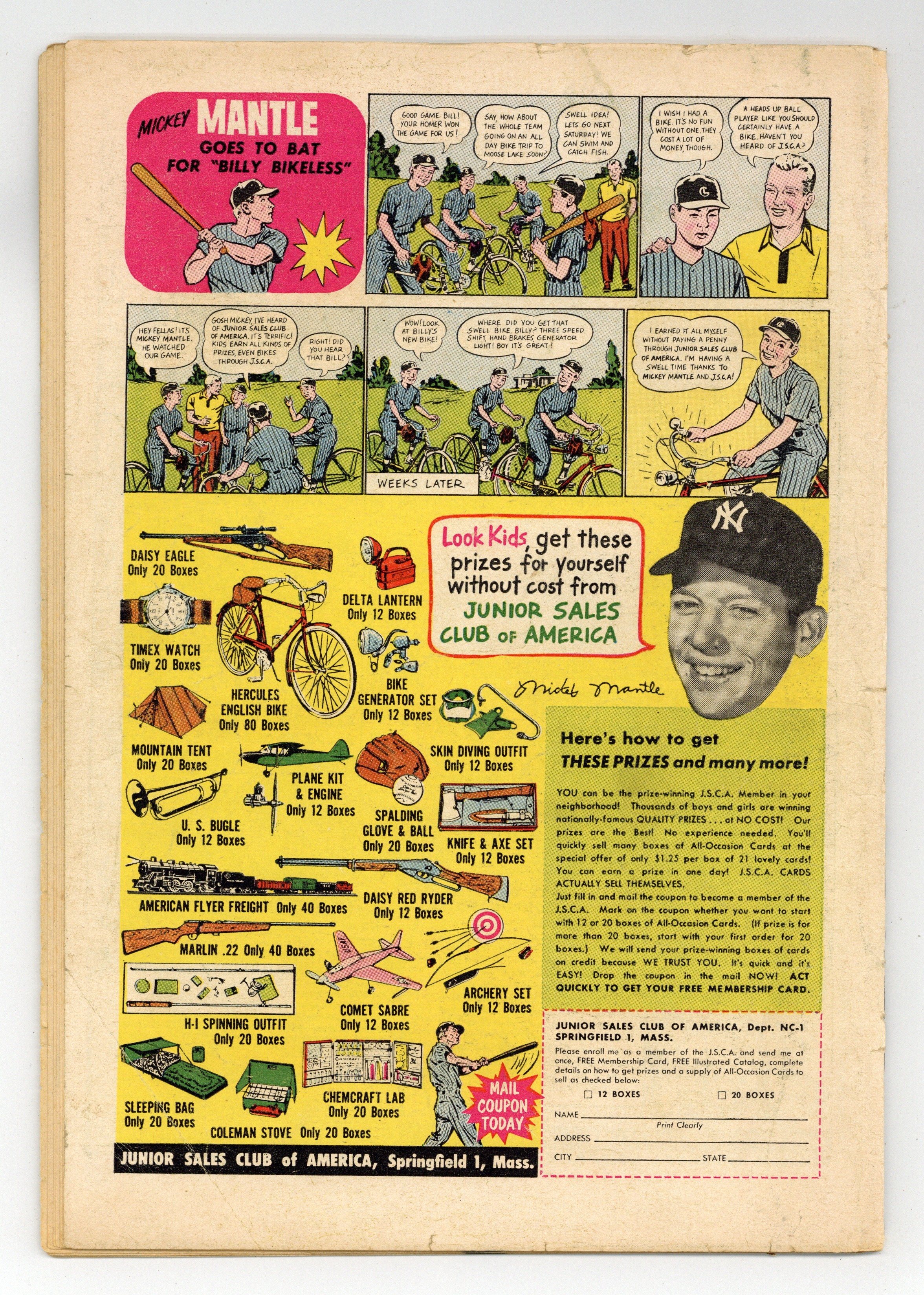Cover pencils by Curt Swan, inks by Stan Kaye. The Reversed Heroes, script by Bill Finger, pencils by Dick Sprang, inks by Ray Burnley; When Elton Craig finds some capsules from Krypton, he takes one and gains superpowers; He captures Superman with some Kryptonite, so Superman takes one of the pills and loses his superpowers; He contacts Batman and Robin, who take the pills and gain superpowers and stop Elton's crime spree. Special Brotherhood Week Quiz public service announcement starring Buzzy, script by Jack Schiff, art by Ruben Moriera. The Green Sword starring Green Arrow, art by George Papp; Green Arrow adopts a sword as his weapon and abandons his arrows. Lionel and his Lions humor page by Henry Boltinoff. Secret Below the Sea text story. The Retirement of Tomahawk, art by Nick Cardy. 36 Pages, Full Color. Cover price $0.10.