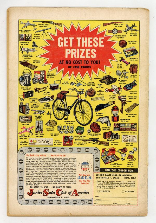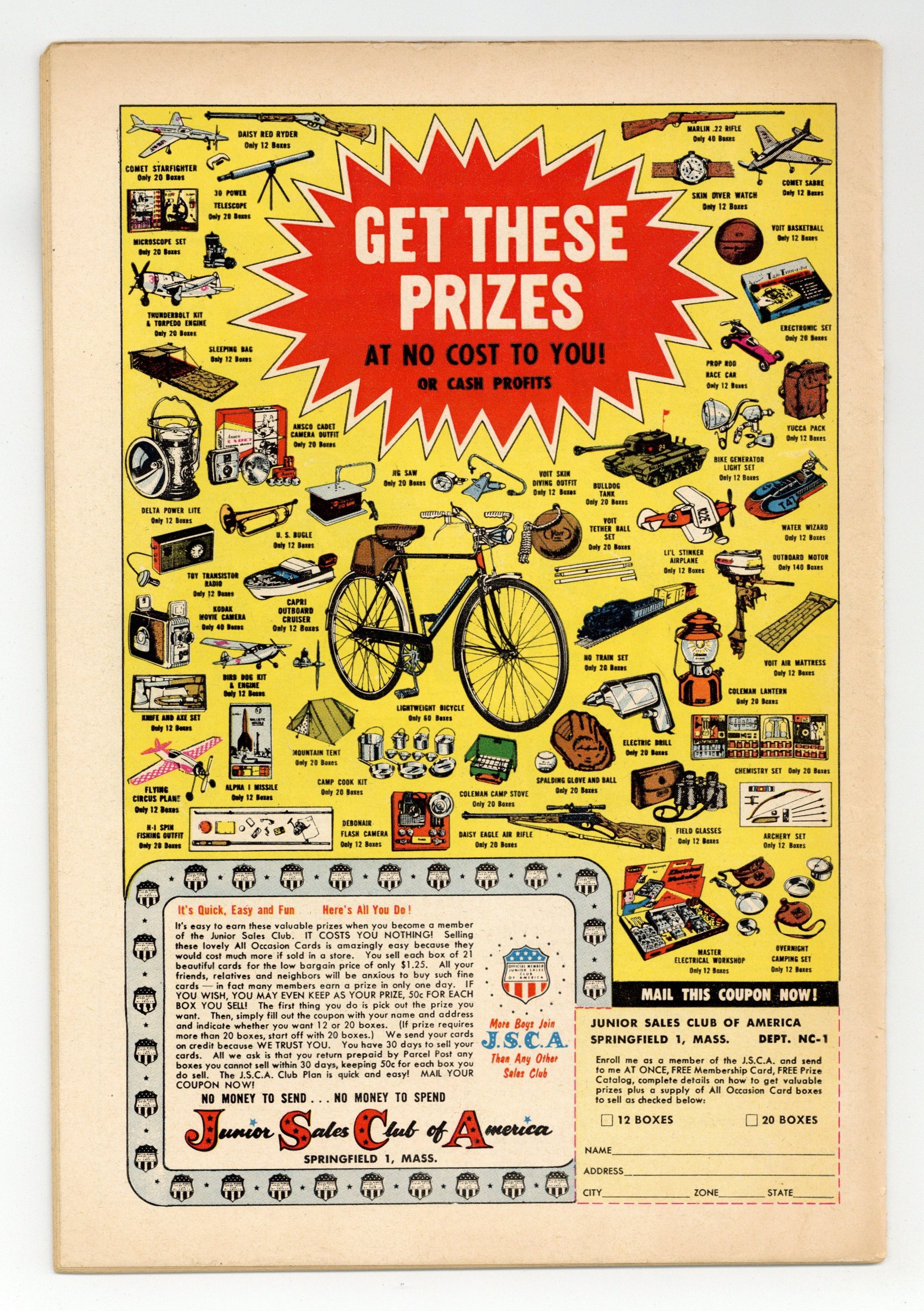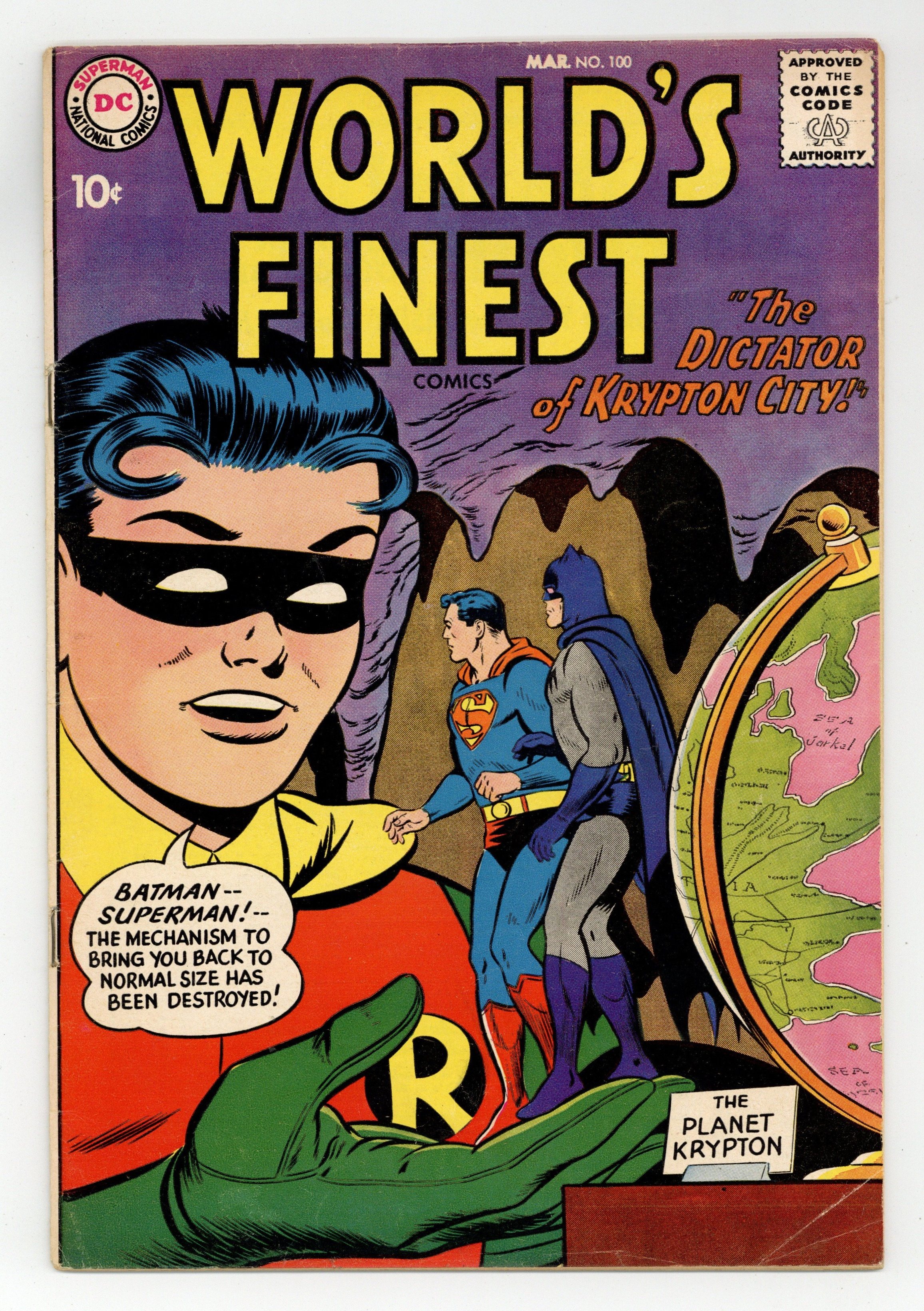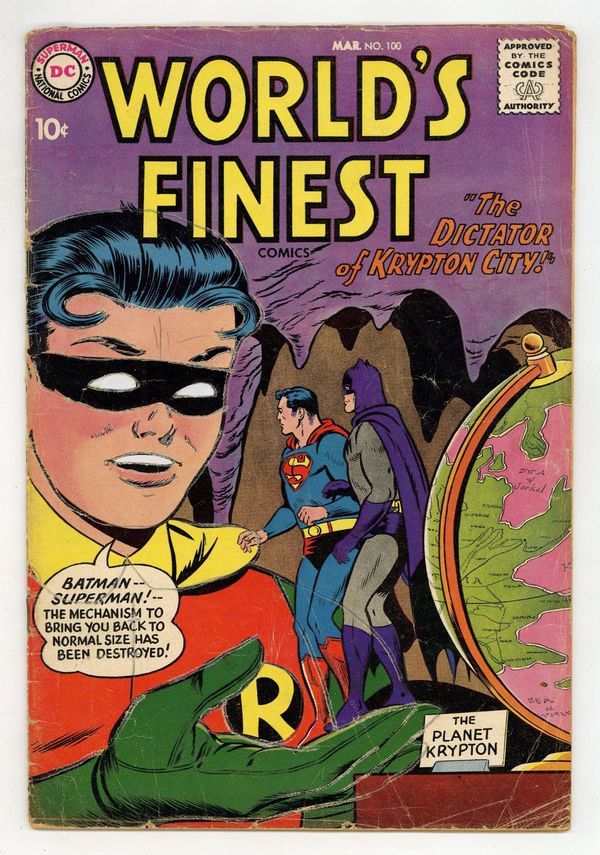 Cover pencils by Curt Swan, inks by Stan Kaye. The Dictator of Krypton City, script by Bill Finger, pencils by Dick Sprang, inks by Stan Kaye; Luthor shrinks himself and tricks Superman into leaving him in the Fortress, where he enters Krypton City [Kandor] and takes over. Mystery of the Vanishing Boys starring Tomahawk, art by Bob Brown. Case of the Green Error Clown starring Green Arrow, art by Lee Elias; Green Arrow and Speedy meet the Green Error, a clown who spoofs Green Arrow at the circus. Green Error's tools help them stop the robbers who stole the day's receipts. 36 Pages, Full Color. Cover price $0.10.