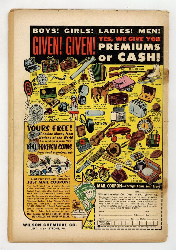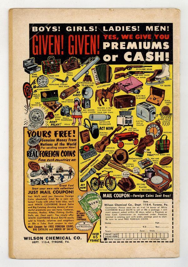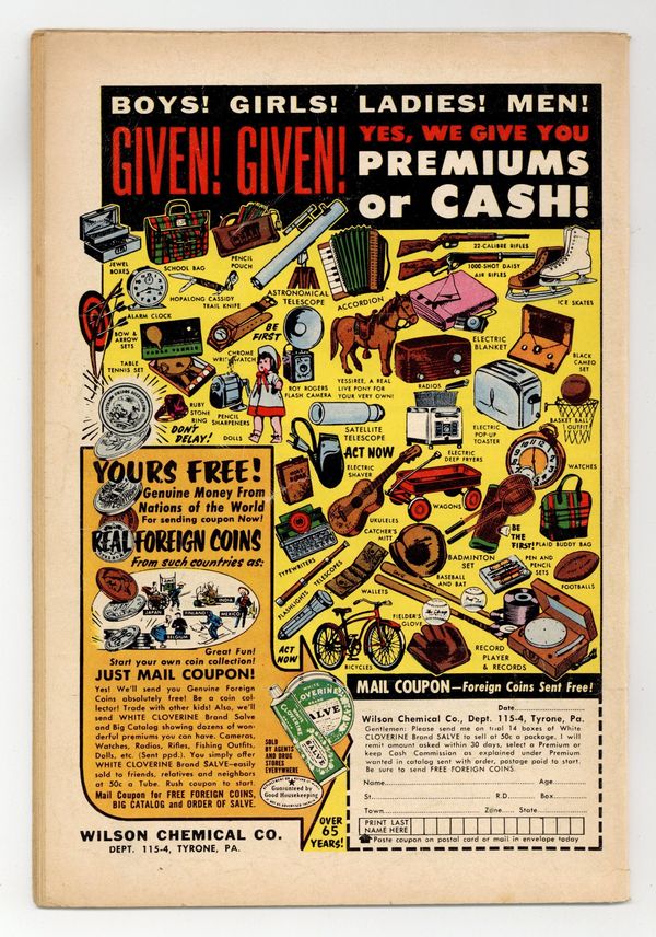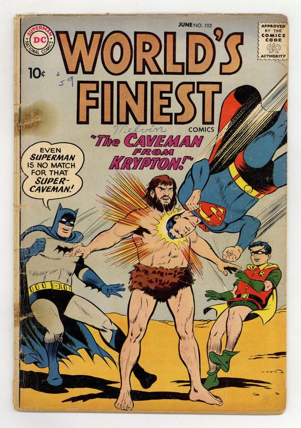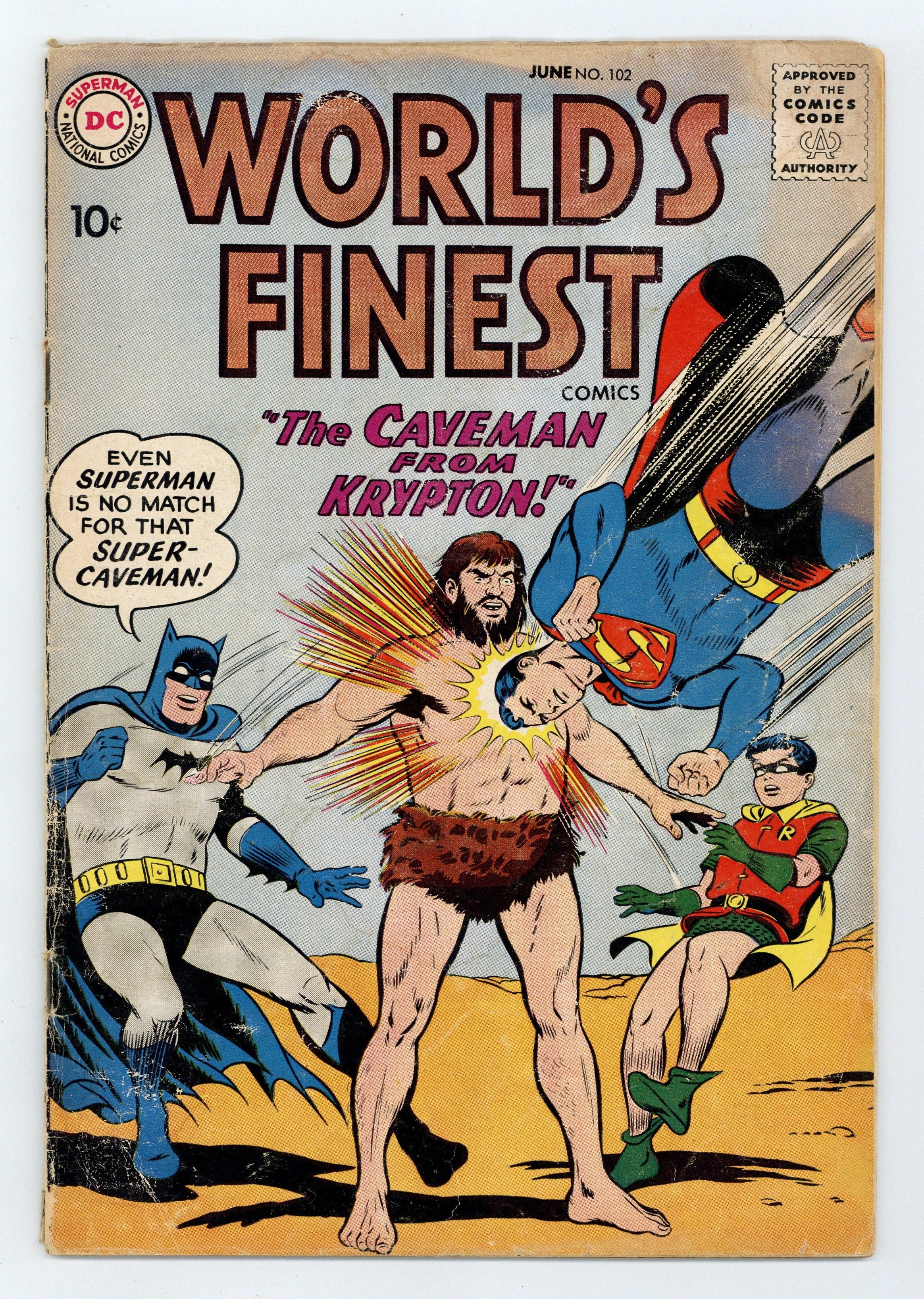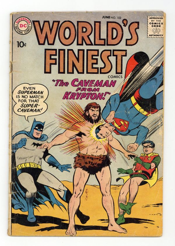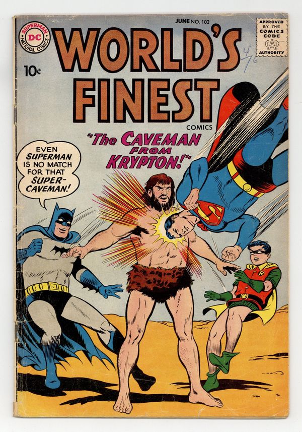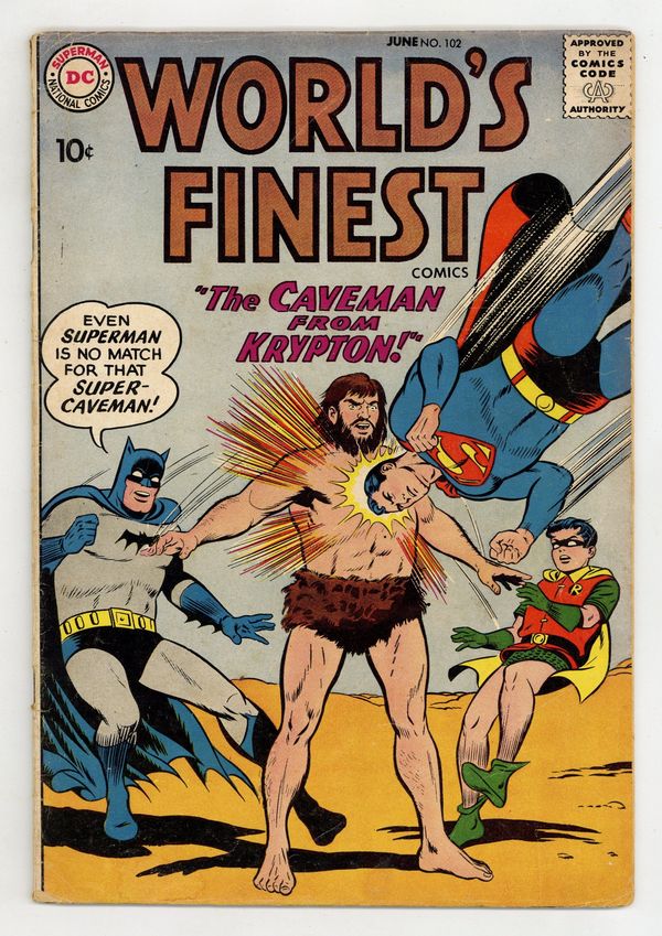 Cover pencils by Curt Swan, inks by Stan Kaye. The Caveman From Krypton, script by Bill Finger, pencils by Dick Sprang, inks by Sheldon Moldoff and Ray Burnley (splash only); A meteor crashes in the country and a caveman from ancient Krypton emerges. Pete and his boss Jo-Jo try to use the caveman's powers to help them steal from banks, but are stopped by Superman, Batman and Robin. L'il Brontosaurus humor page by Henry Boltinoff. The Winged Space Raider starring Tommy Tomorrow, script by Arnold Drake, art by Jim Mooney. The Sound Searchers text story. Case of the Camouflage King!, script by Ed Herron, art by Lee Elias; Green Arrow must stop the Camouflage King from robbing the circus. 36 Pages, Full Color. Cover price $0.10.