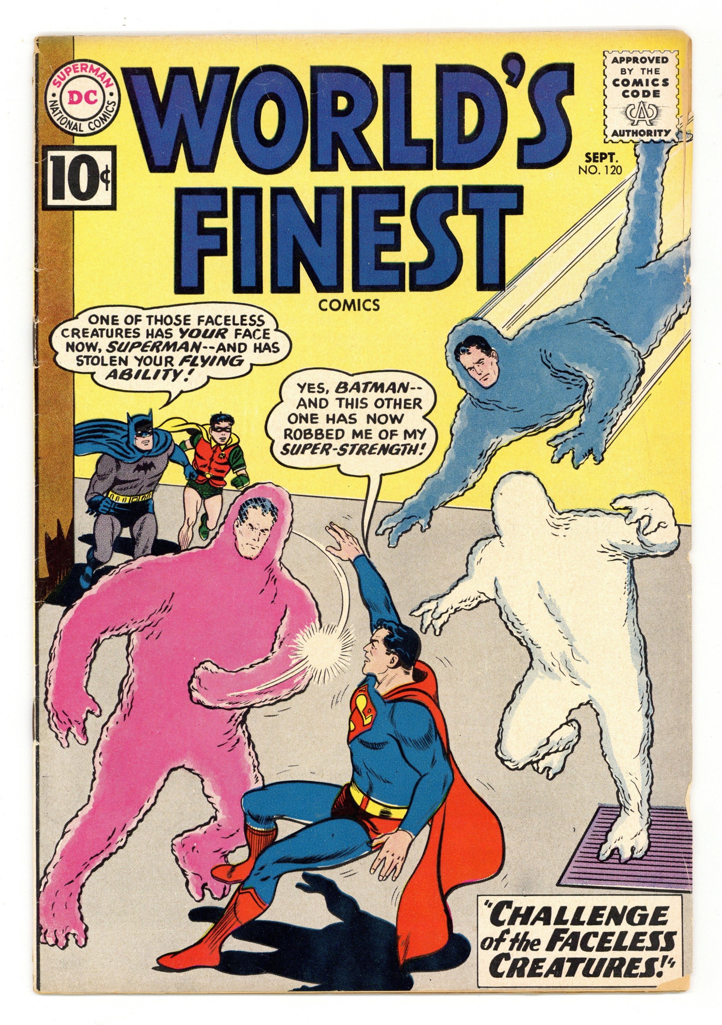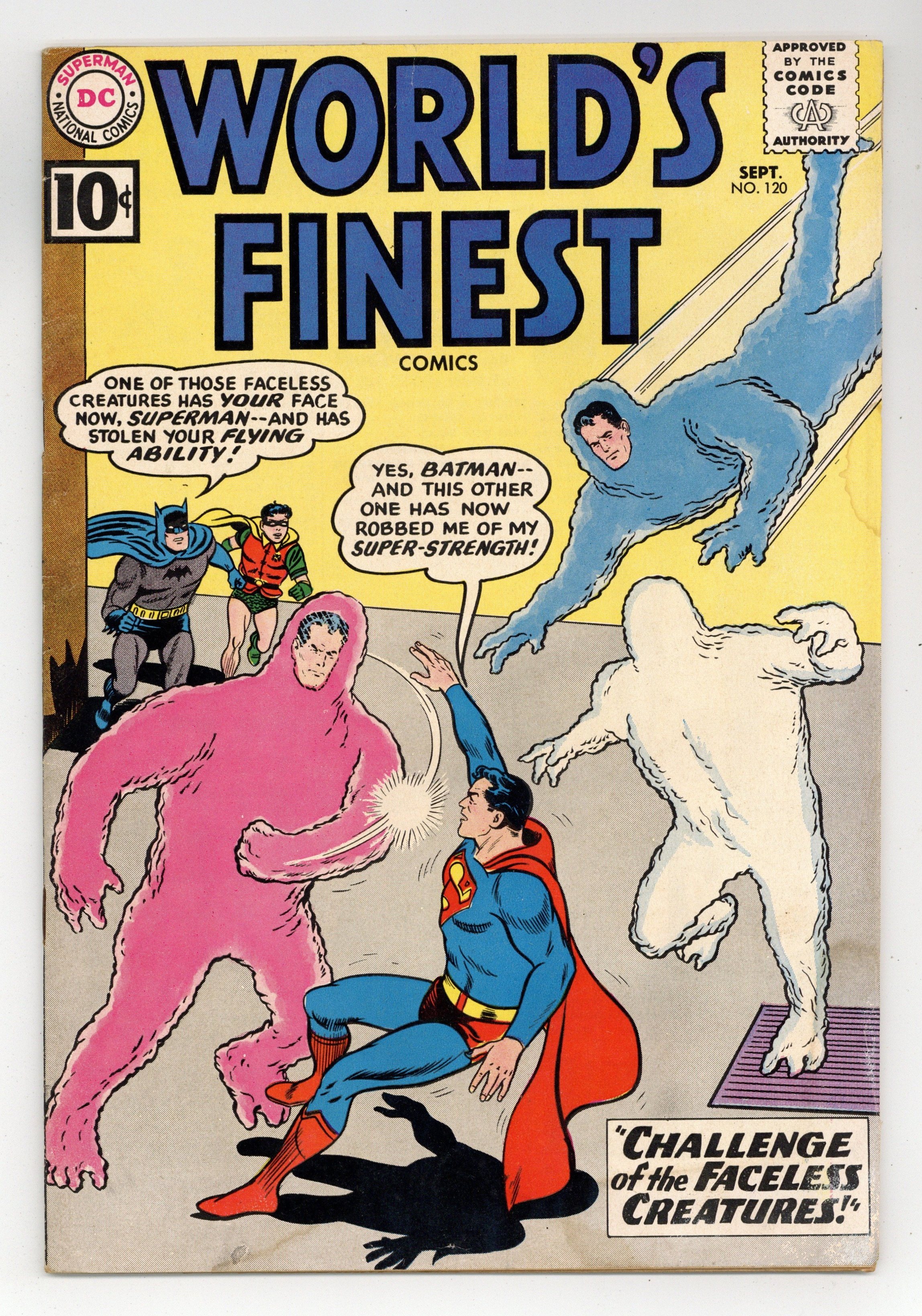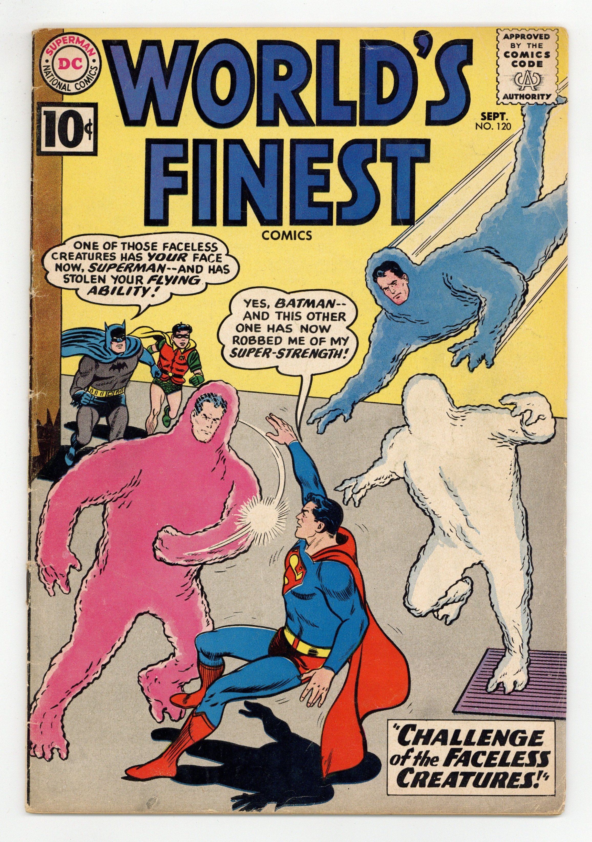 Cover pencils by Curt Swan, inks by Sheldon Moldoff. Challenge of the Faceless Creatures starring Superman and Batman, script by Jerry Coleman and Jim Mooney; Two criminals use ancient magic to control three artificial being that can each steal one of Superman's powers. The Weapons that Boomeranged starring Tommy Tomorrow, script by Jack Miller, art by Jim Mooney. The Deadly Trophy Hunt starring Green Arrow, script by Ed Herron, art by Lee Elias; Green Arrow and Speedy go along on an expedition of the Adventurers' Club to help keep them out of trouble. 36 Pages, Full Color. Cover price $0.10.