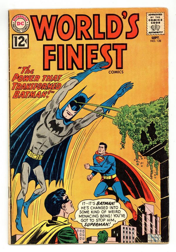 Cover pencils by Dick Dillin, inks by Sheldon Moldoff. The Power That Transformed Batman starring Superman and Batman, script by Jerry Coleman, art by Jim Mooney; Under the influence of a weird space meteor Batman becomes susceptible to kryptonite. Rules of Water Safety! starring Buzzy, script by Jack Schiff, art by Win Mortimer. The Trial Of Aquaman starring Aquaman and Aqualad, script by Jack Miller, art by Ramona Fradon; Aquaman is on trial for piracy and the death of Aqualad. The Too-Old Hero starring Green Arrow, script by Dave Wood, art by Lee Elias; Patrolman Charlie Donley is getting to old for his job and is moved to a desk job, until he saves Green Arrow and Speedy from some bank robbers. 36 Pages, Full Color. Cover price $0.12.