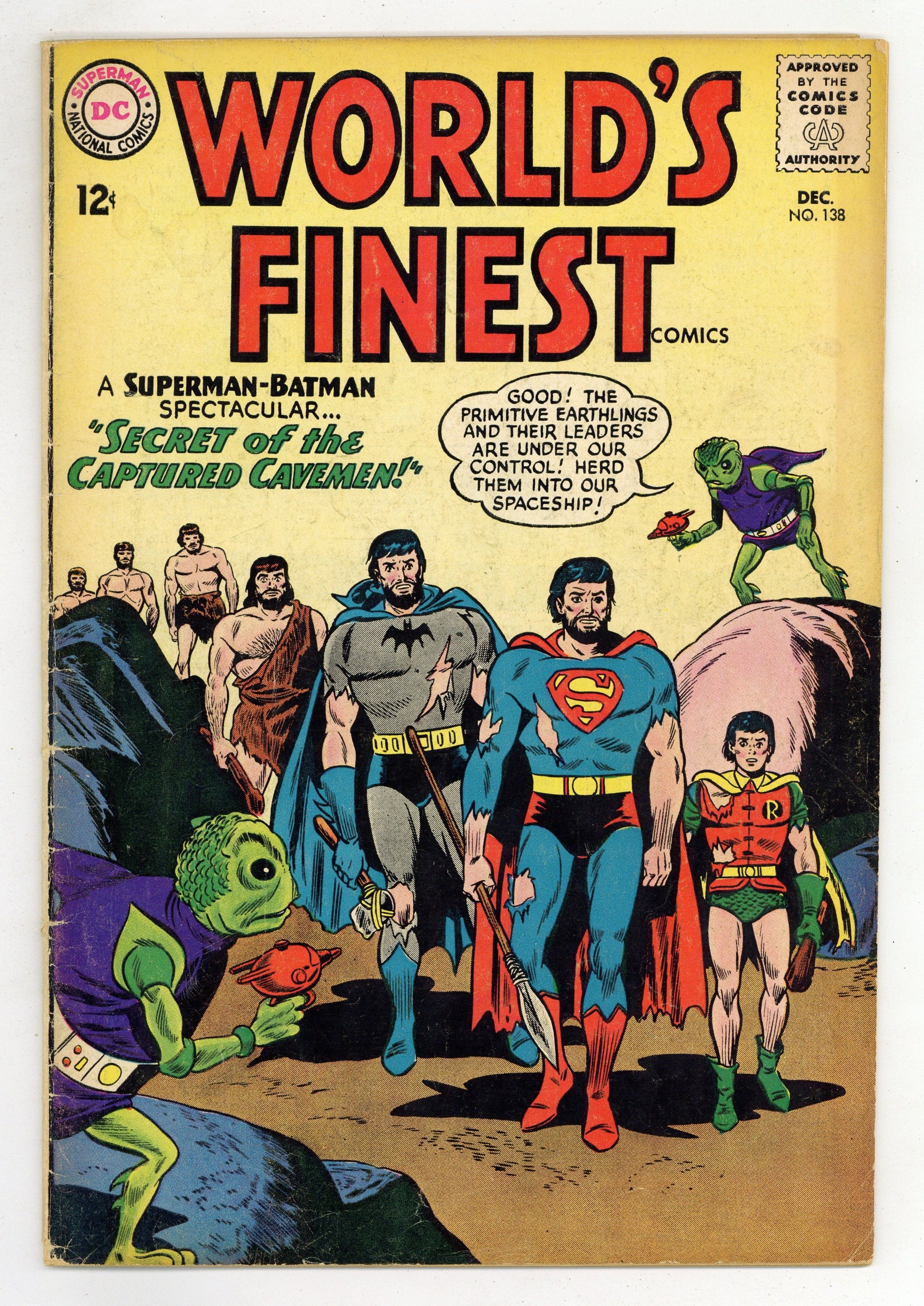 Cover pencils by Dick Dillin, inks by Sheldon Moldoff. Secret of the Captive Cavemen starring Superman and Batman, script by Bill Finger, art by Jim Mooney; Batman, Robin and Superman chase a mysterious alien into the prehistoric past. The Secret Face Of Funny-Arrow! starring Green Arrow, script by Ed Herron, art by Lee Elias; Green Arrow and Speedy must determine who is pulling robberies as Funny-Arrow. Peter Puptent, Explorer humor page by Henry Boltinoff. 36 Pages, Full Color. Cover price $0.12.