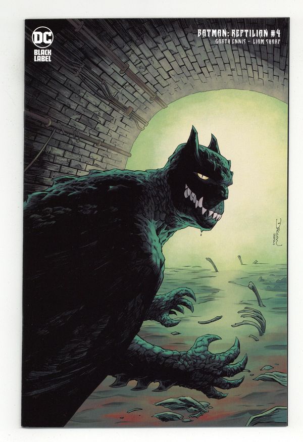 Tags: Batman$4.00Limited 1 for 25 Retailer Incentive Variant Cover. Written by Garth Ennis. Art by Liam Sharp. Cover by Declan Shalvey. The monster—revealed! Trailing behind the mysterious reptilian menace savaging Gotham, Batman hits the streets hard searching for answers but finds only more questions. The Dark Knight takes his search beneath the streets and into the sewers to seek out Killer Croc. But when he finds the reptilian rogue, he quickly realizes that this may be the strangest case of his career. 32 pages, full color. Mature Readers Cover price $4.99.