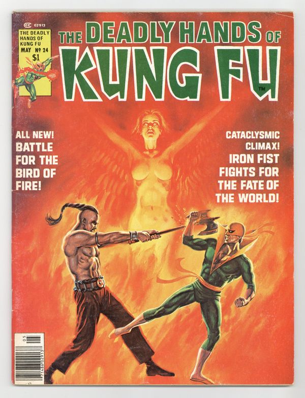 Stan Lee Presents: The Deadly Hands of Kung Fu. Cover by Bob Larkin. Includes: "Enter the Letters!" A letters page with readers' thoughts on previous issues. An editorial by Archie Goodwin. Iron fist stars in "The Angry Dragon...Kills!" Story by Chris Claremont. Art by Rudy Nebres. "Fighting Arts Reviewed!" A new monthly column examining new trends in the world of martial arts by David Kraft. "Three Misses!" An article by Roberto Fuentes and Piers Anthony. Illustrated by George Perez and Terry Austin. Includes a double-page spread featuring Iron Fist by Rudy Nebres. "The Master Gunfighter is Strictly Amateur!" A movie review by Don McGregor. Plus, the Sons of the Tiger and the White Tiger star in "Tiger, Tiger...Burning Bright!" Guest-starring Jack of Hearts. Story by Bill Mantlo. Art by Keith Giffen and the Tribe. Includes a B&W poster by Mike Zeck of Shang Chi, the Master of Kung Fu. Black and white. Cover price $1.00.