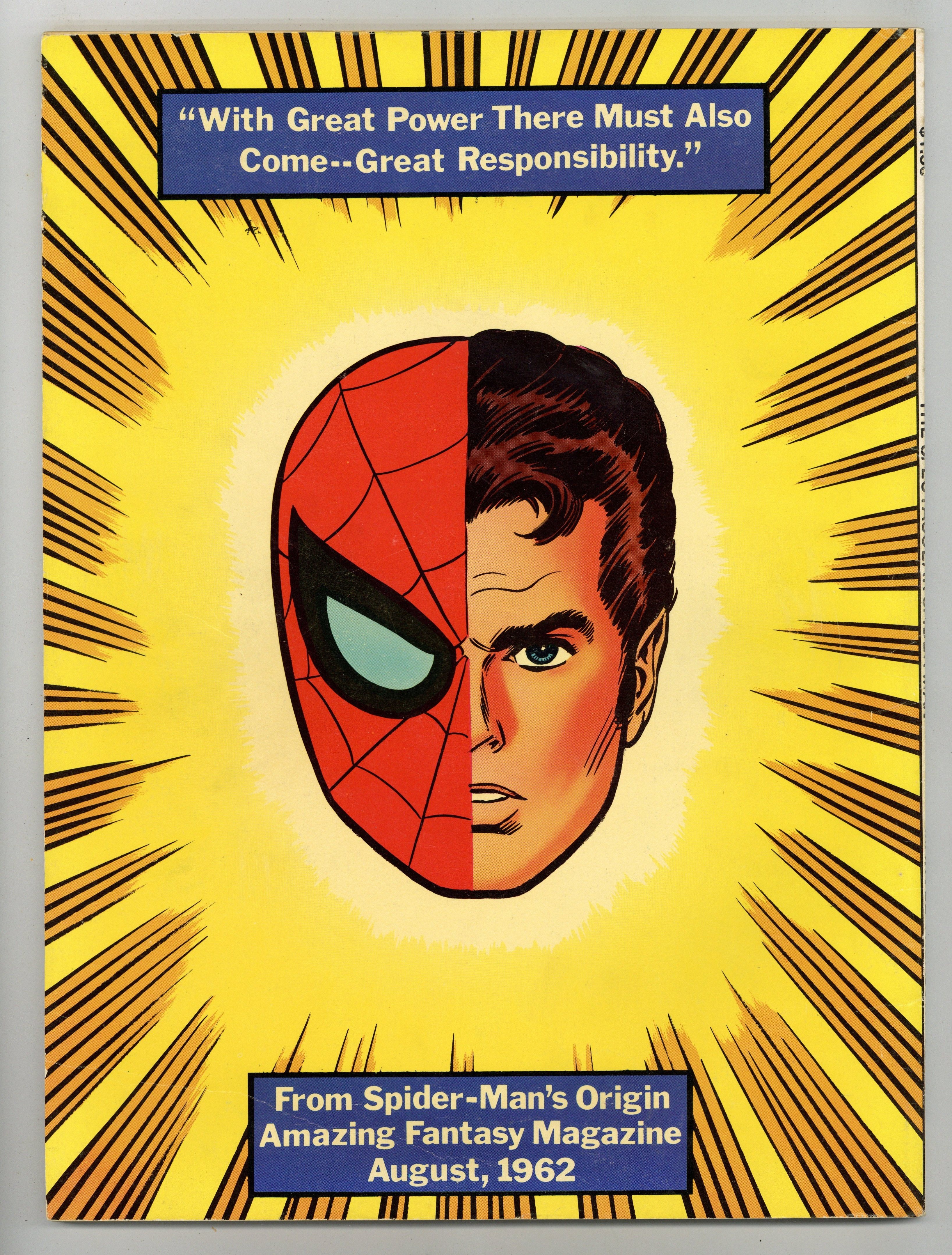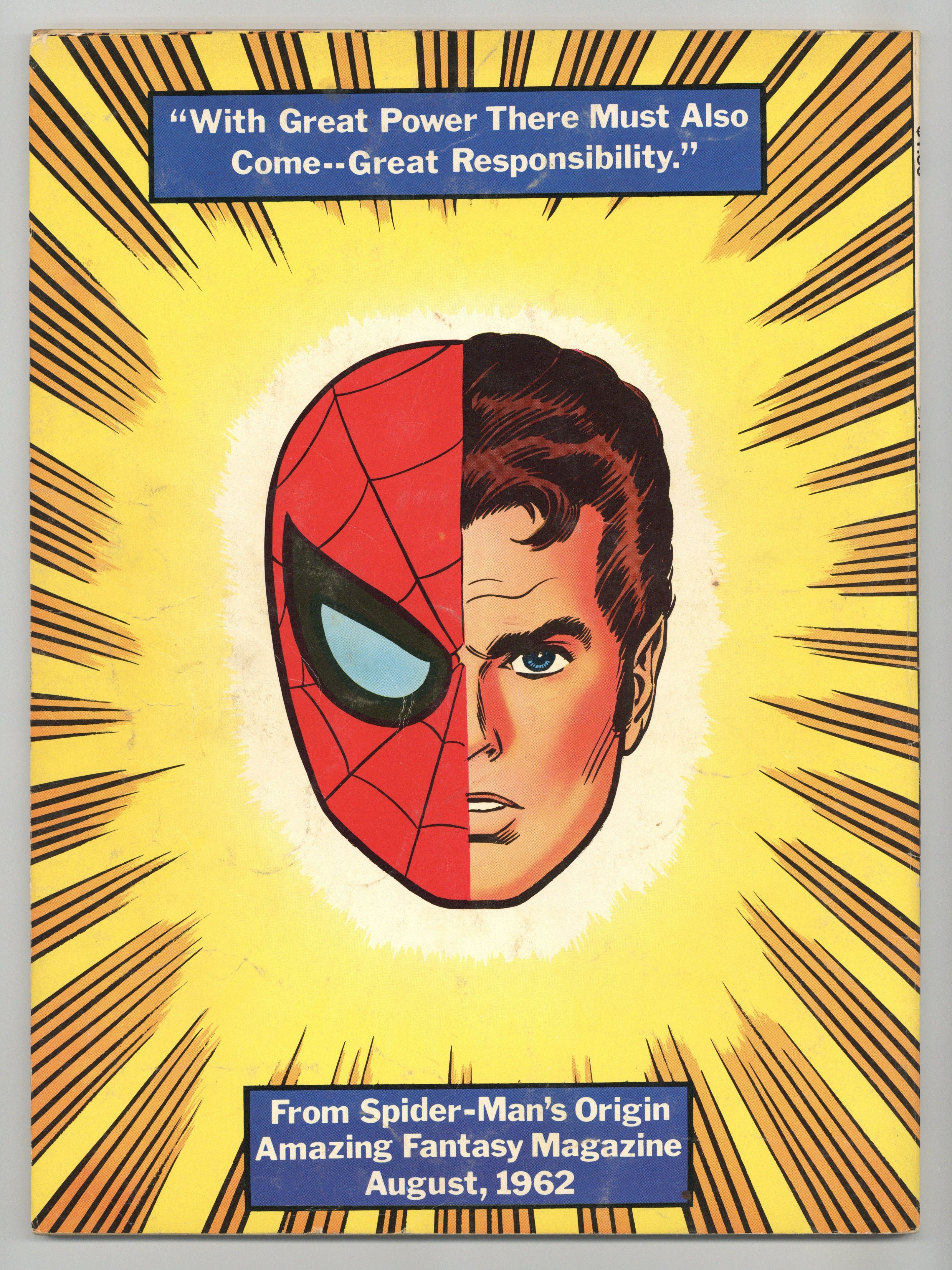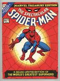 $25.00Marvel Treasury Edition (1974) #1 features the Spectacular Spider-Man. Special introduction by Stan Lee. This issue features "The Green Goblin" (Reprints 1st app. of GG) by Stan Lee and Steve Ditko, "Spider-Man Tackles the Torch" (Reprints Strange Tales Annual #2) by Stan Lee and Jack Kirby, "The Birth of a Super-Hero" (Reprints Amazing Spider-Man #42) by Stan Lee and John Romita, "The Reprehensible Riddle of The Sorcerer" (Reprints Marvel Super Heroes #14) Story by Stan Lee and Ross Andru, and finally "And Death Shall Come" (Reprints Amazing Spider-Man #90) by Stan Lee and Gil Kane. Features the villainy of the Green Goblin, the Enforcers, Rhino, and Dr. Octopus. Guest-starring the Incredible Hulk, Fantastic Four, and John Jameson. Also included is 2-page spread from the Daily Bugle and a pin-up featuring Spider-Man, Thor, Hulk, Thing, Hercules, and the Savage Sub-Mariner. 94 pages. Cover price $1.50.