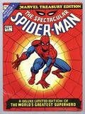 $47.50Marvel Treasury Edition (1974) #1 features the Spectacular Spider-Man. Special introduction by Stan Lee. This issue features "The Green Goblin" (Reprints 1st app. of GG) by Stan Lee and Steve Ditko, "Spider-Man Tackles the Torch" (Reprints Strange Tales Annual #2) by Stan Lee and Jack Kirby, "The Birth of a Super-Hero" (Reprints Amazing Spider-Man #42) by Stan Lee and John Romita, "The Reprehensible Riddle of The Sorcerer" (Reprints Marvel Super Heroes #14) Story by Stan Lee and Ross Andru, and finally "And Death Shall Come" (Reprints Amazing Spider-Man #90) by Stan Lee and Gil Kane. Features the villainy of the Green Goblin, the Enforcers, Rhino, and Dr. Octopus. Guest-starring the Incredible Hulk, Fantastic Four, and John Jameson. Also included is 2-page spread from the Daily Bugle and a pin-up featuring Spider-Man, Thor, Hulk, Thing, Hercules, and the Savage Sub-Mariner. 94 pages. Cover price $1.50.