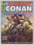 Tags: Conan$68.00Painted cover art by Boris Vallejo. Conan and Red Sonja star in "Curse of the Undead-Man," script by Roy Thomas, pencils by John Buscema, inks by Pablo Marcos; Conan and Red Sonja put an end to the undead sorcerer Costranno; Adapted from the story "Mistress of Death" by Robert E. Howard and Gerald Page; continued in part from Conan the Barbarian 42. "Red Sonja" (3rd appearance), script by Thomas, art by Esteban Maroto, Neal Adams, and Ernie Chan (as Ernie Chua); When Red Sonja returns with a tiara she was sent for by King Ghannif she learns her "reward" is to be made a part of his harem. "Blackmark," script and art by Gil Kane (reprinting chapter 1 from the Bantam Books paperback); a Conan reprint from Savage Tales 1 (plus the additional splash page from Conan the Barbarian 16). "The Frost Giant's Daughter," script by Thomas, art by Barry Windsor-Smith (adapted from the Howard story); Conan chases Atali across the snow, slays her two frost giant brothers, and catches her; Her father, Ymir then takes her from Conan. "Conan's Women Warriors," an article by Fred Blosser illustrated by Esteban Maroto, Steve Gan, Hugh Rankin (original Weird Tales art), and Roy Krenkel; and "An Atlantean in Aquilonia," a Kull article by Glenn Lord illustrated by John Severin and Ross Andru. Alfredo Alcala pin-up. Maroto frontispiece. 84 pgs., B&W. Cover price $1.00.