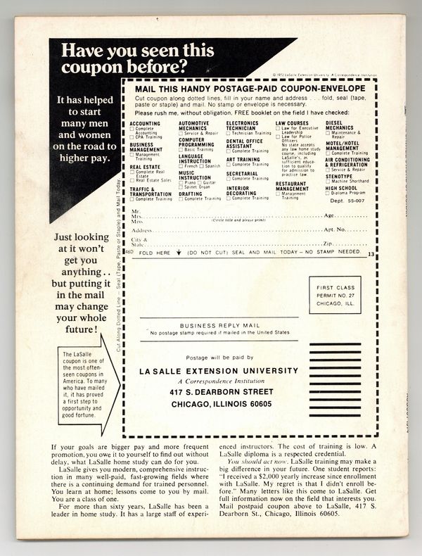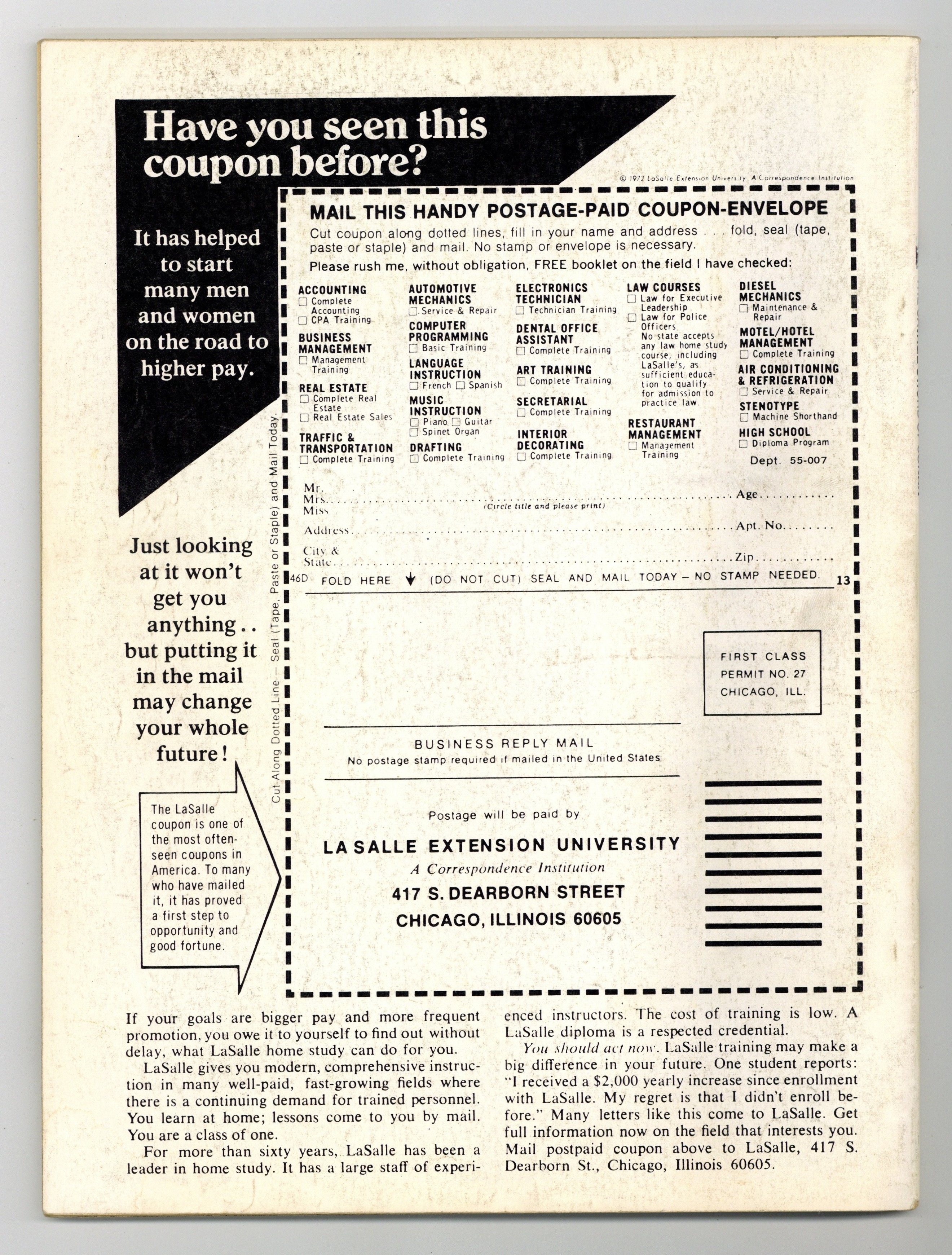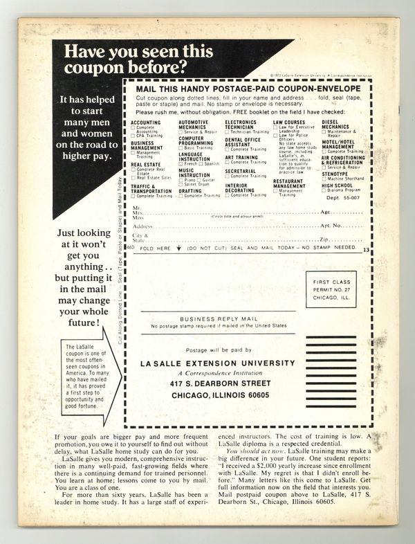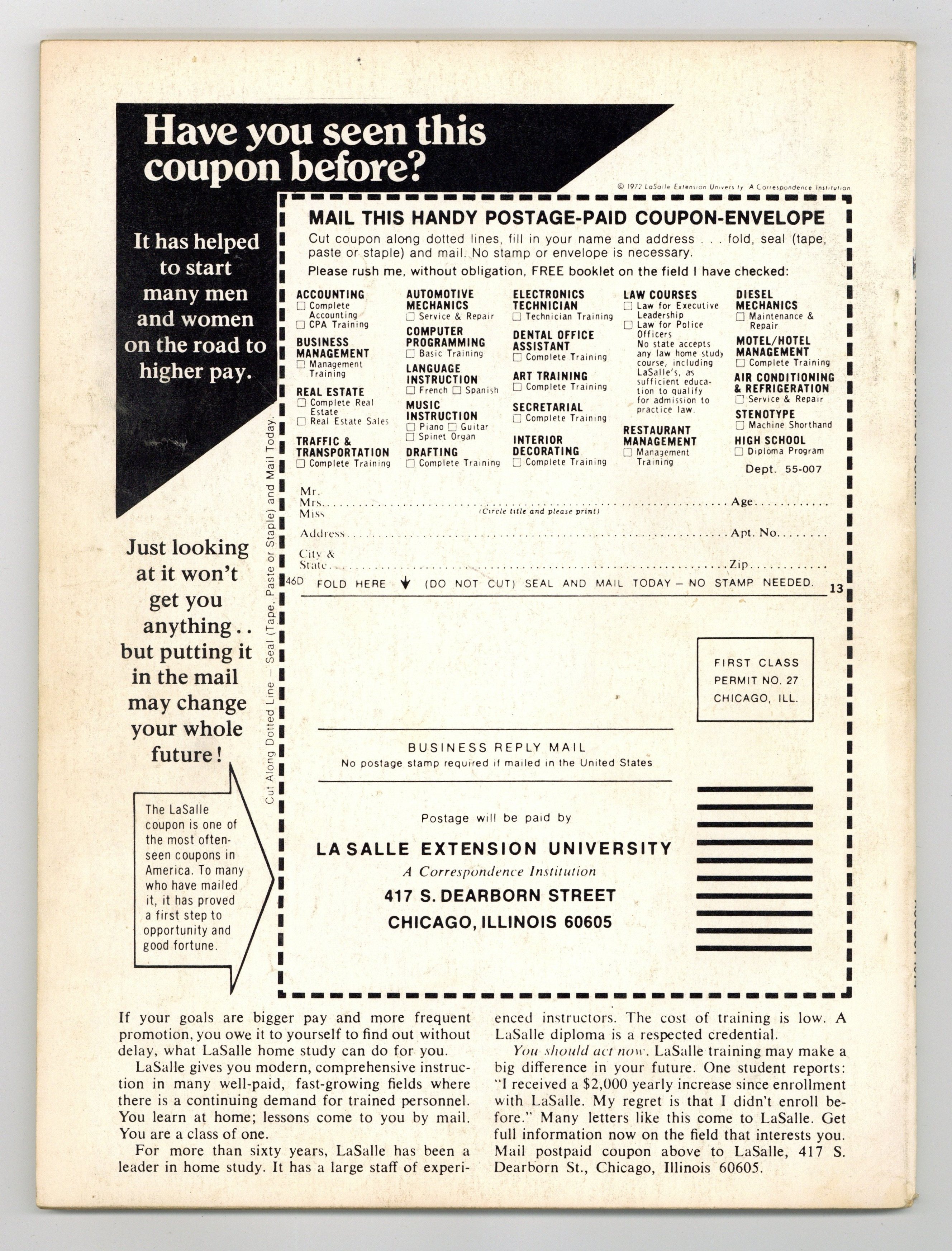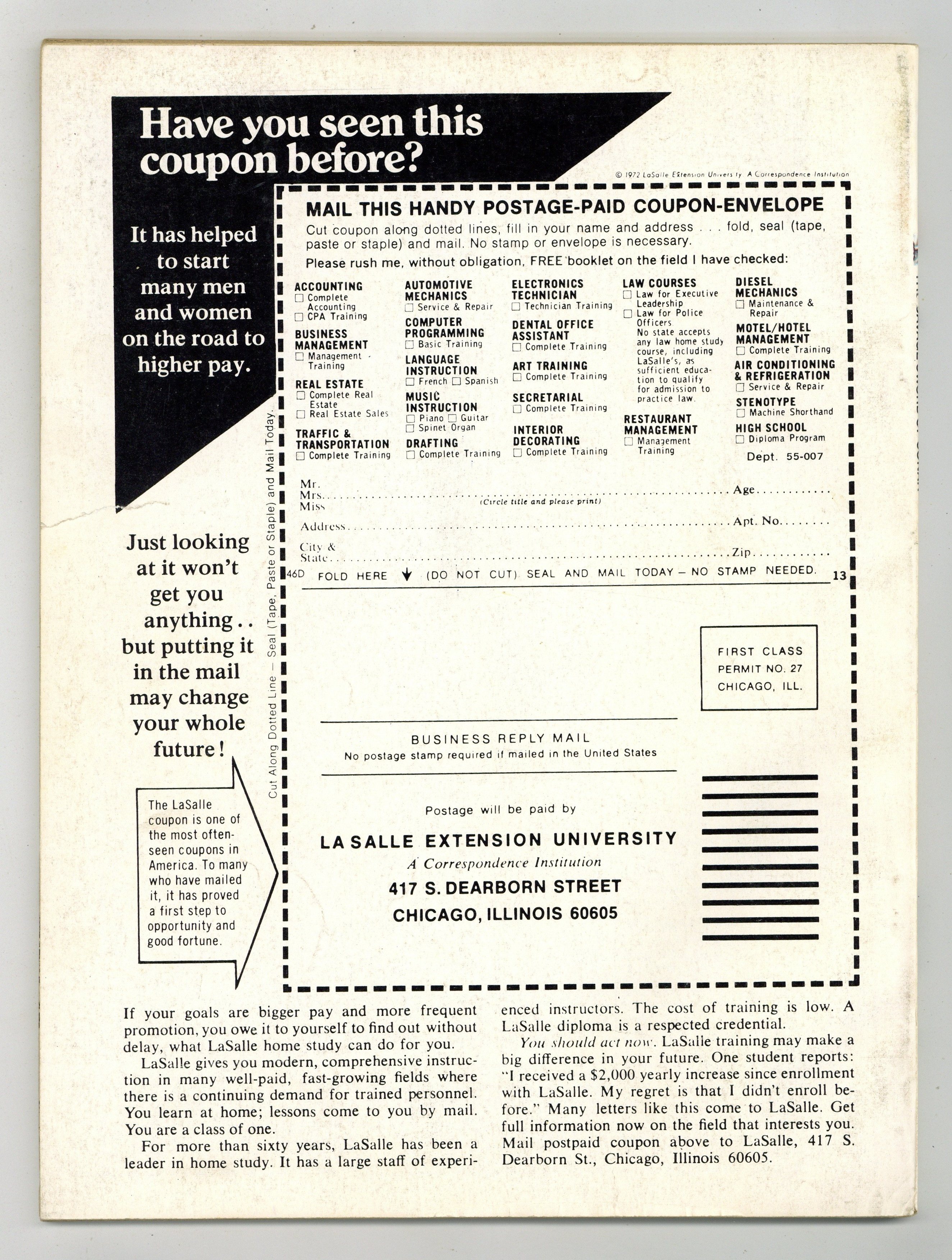 Painted cover art by Boris Vallejo. Conan and Red Sonja star in "Curse of the Undead-Man," script by Roy Thomas, pencils by John Buscema, inks by Pablo Marcos; Conan and Red Sonja put an end to the undead sorcerer Costranno; Adapted from the story "Mistress of Death" by Robert E. Howard and Gerald Page; continued in part from Conan the Barbarian 42. "Red Sonja" (3rd appearance), script by Thomas, art by Esteban Maroto, Neal Adams, and Ernie Chan (as Ernie Chua); When Red Sonja returns with a tiara she was sent for by King Ghannif she learns her "reward" is to be made a part of his harem. "Blackmark," script and art by Gil Kane (reprinting chapter 1 from the Bantam Books paperback); a Conan reprint from Savage Tales 1 (plus the additional splash page from Conan the Barbarian 16). "The Frost Giant's Daughter," script by Thomas, art by Barry Windsor-Smith (adapted from the Howard story); Conan chases Atali across the snow, slays her two frost giant brothers, and catches her; Her father, Ymir then takes her from Conan. "Conan's Women Warriors," an article by Fred Blosser illustrated by Esteban Maroto, Steve Gan, Hugh Rankin (original Weird Tales art), and Roy Krenkel; and "An Atlantean in Aquilonia," a Kull article by Glenn Lord illustrated by John Severin and Ross Andru. Alfredo Alcala pin-up. Maroto frontispiece. 84 pgs., B&W. Cover price $1.00.