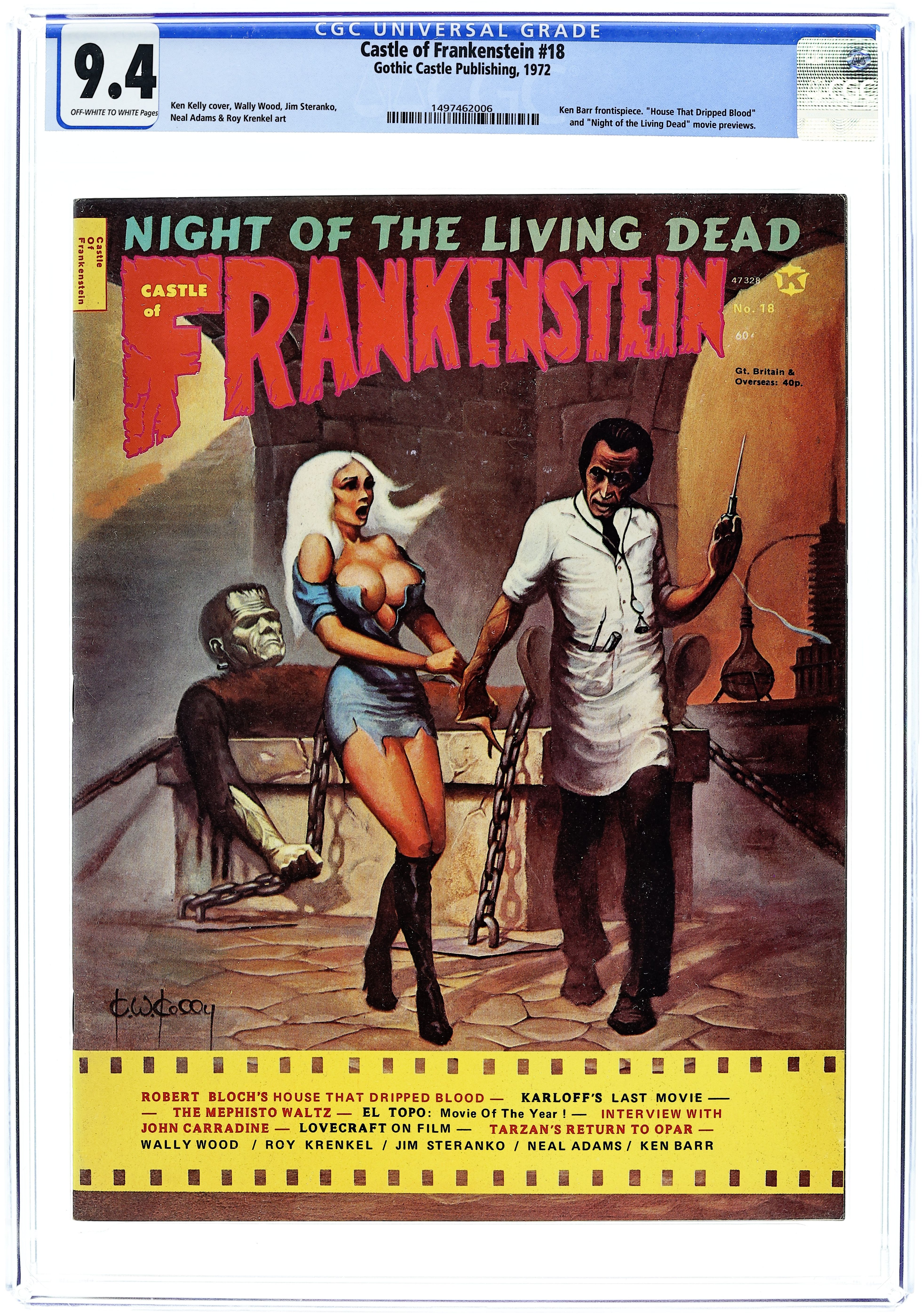 Mature readers. This issue has articles on The Mephisto Waltz, H.P. Lovecraft, The House that Dripped Blood, El Topo, Night of the Living Dead, and Tales from the Crypt. Also includes interviews with Alexandro Jodorowsky and John Caradine. Cover art by Ken Kelly. Cover price $0.60.