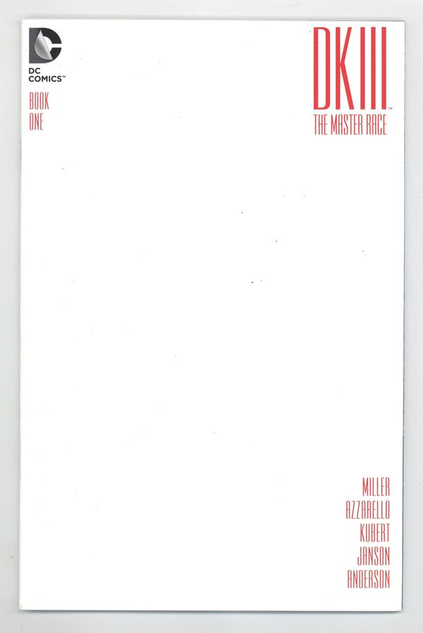 Tags: Batman$9.00Convention Exclusive Blank Cover. Written by Frank Miller and Brian Azzarello. Art by Andy Kubert and Klaus Janson. The epic ending you never saw coming is here because you demanded it! The Dark Knight rises again to face the dawn of the master race! 36 pages, full color. Includes a bound-in, 12 page mini-comic (5 1/2-in X 8 1/2-in): Dark Knight Universe Presents: Atom. #1