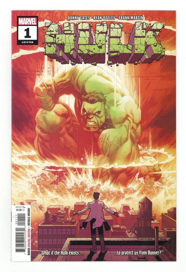Tags: Marvel Legacy Numbering: Hulk (part 768), Avengers, Doctor Strange, Fantastic Four, Hulk, Spider-Man$8.00Written by Donny Cates. Art and Cover Ryan Ottley. IMMORTAL NO LONGER! CATES & OTTLEY DELIVER A NEW, COLOSSAL-SIZED ERA! MAD SCIENTIST Part 1 of 6 The uncontrollable rage of the Hulk has reached an all-new level, and nobody – including the Avengers – is prepared to handle it. But is it really the Hulk that people should be afraid of, or is there something missing to this puzzle? Join the superstar creative team of Donny Cates and Ryan Ottley as they look to the stars for the next era of HULK! 36 pages, full color. Rated T+ Cover price $4.99.